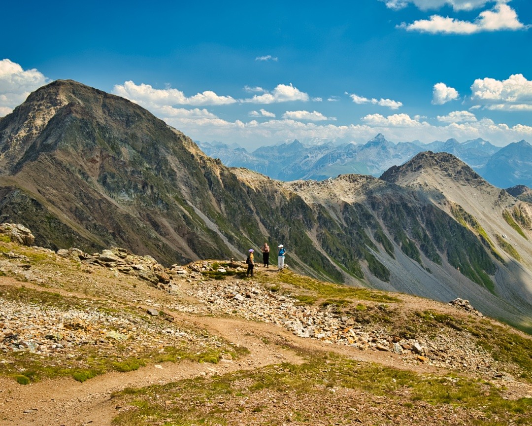 Das Parpaner Rothorn ist ein beliebtes Ausflugsziel und kann von der Lenzerheide aus schnell mit der Seilbahn erreicht werden. Wenn man gerade wenig Zeit oder Energie hat, aber trotzdem eine kurze und abenteuerliche Tour ohne grosse Höhendifferenz in alpiner Umgebung machen will, dann bietet sich der Übergang vom Parpaner Rothorn zum Aroser Rothorn an. Dorthin führte einst ein markierter Wanderweg, der schon seit vielen Jahren nicht mehr unterhalten wird. Mit Trittsicherheit, Schwindelfreiheit und guten Schuhen sollten die 300 Höhenmeter hinüber zum Gipfel für T4-geübte Wanderer in einer Stunde aber gut zu schaffen sein.