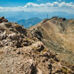 Nach diesem «Vorgipfel» wieder über Gratfelsen und etwas Gehgelände bis an den Fuss des Gipfelaufschwungs. Dieser besteht wiederum aus Blockfelsen mit einer sehr sandigen Wegspur, die sich besonders im Abstieg als ziemlich rutschig erweist. Weiter oben erreicht man das geräumige Gipfelplateau mit zwei Steinmännern. Im rechten (südlichen) befindet sich das Gipfelbuch.