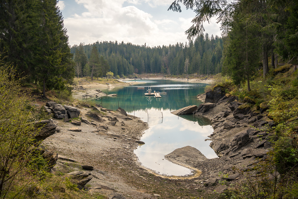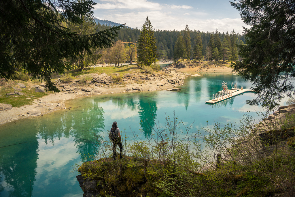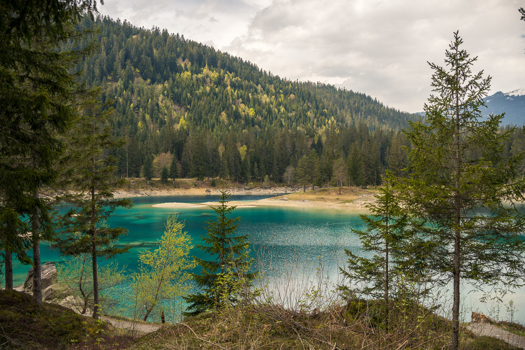 Diese leichte, vor allem abstiegsorientierte Wanderung führte uns von Flims auf Waldstrassen zunächst zum Caumasee. Im Sommer ist hier mit sehr viel Trubel zu rechnen; jetzt im Frühling herrschte hingegen noch verhältnismässig Ruhe, auch wenn sich im Vergleich zu meinem letzten Besuch auf einer Biketour schon einige Ausflügler ans Ufer wagten.