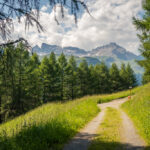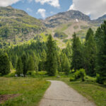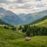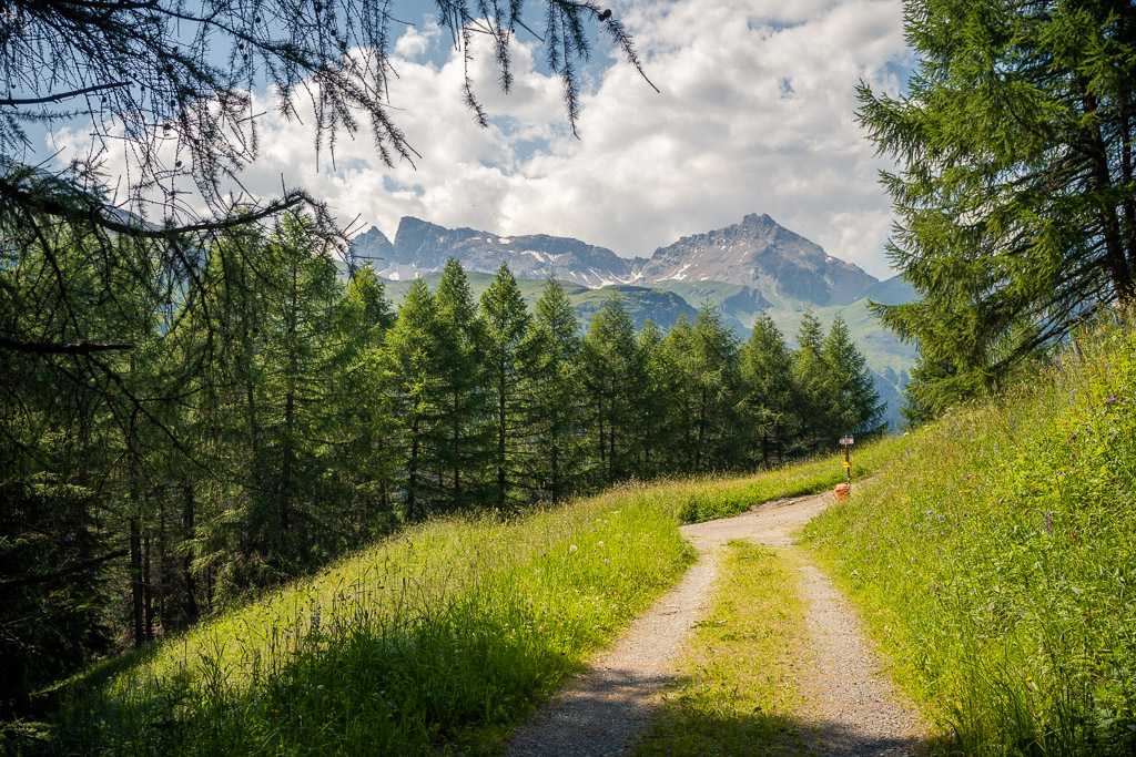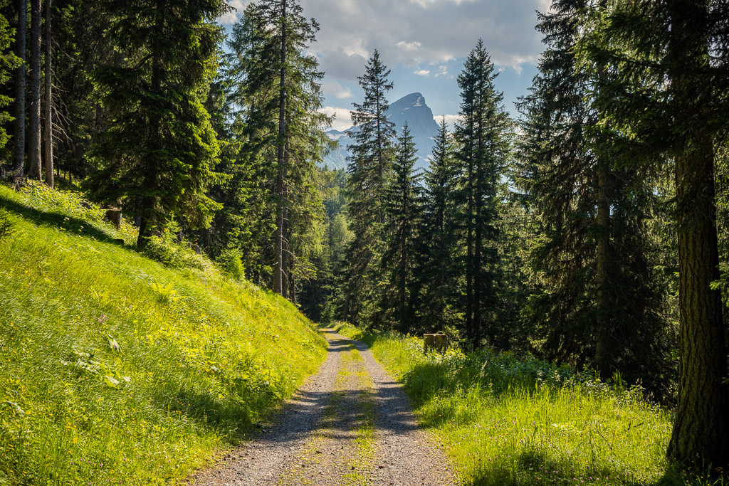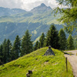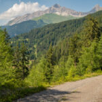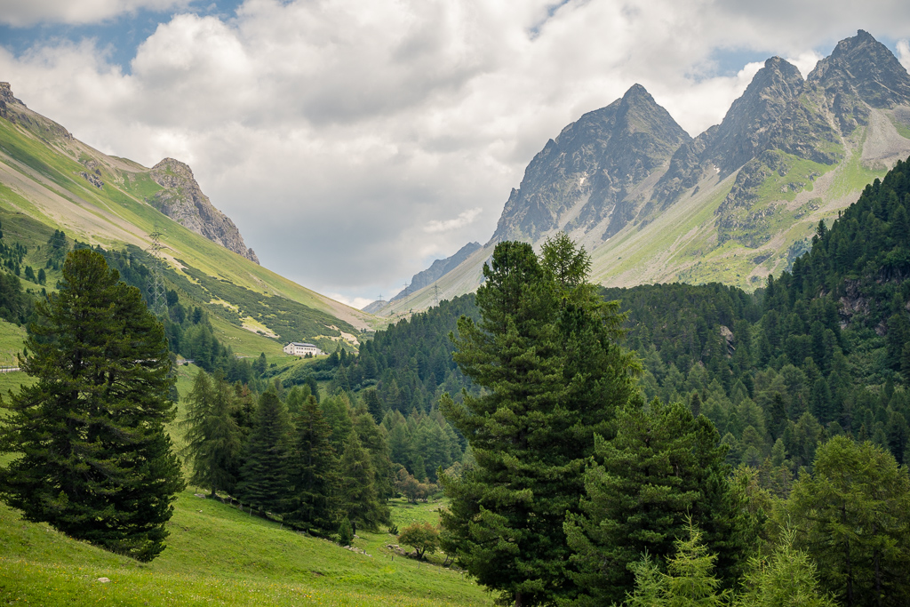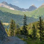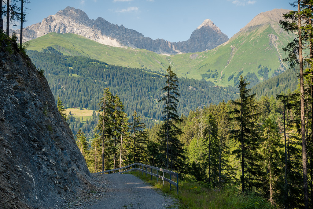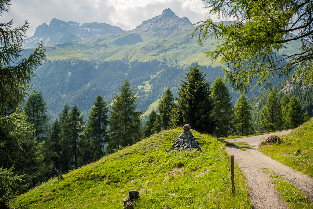 Auf der Abfahrt dann erneut die schon vom Albulapass her bekannten Situationen, diesmal an einer Stelle noch mit einer Steigerung: freilaufende Kühe auf der Passstrasse, fuchtelnde Bauern, wild bremsende Autos und allgemeines Chaos. Danach ging es aber zügig weiter nach Bivio, wo ich endlich von der Strasse abbiegen und erneut in den Wald verschwinden konnte.