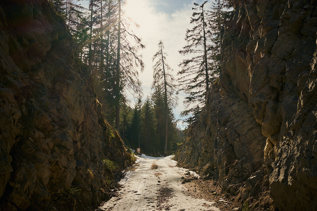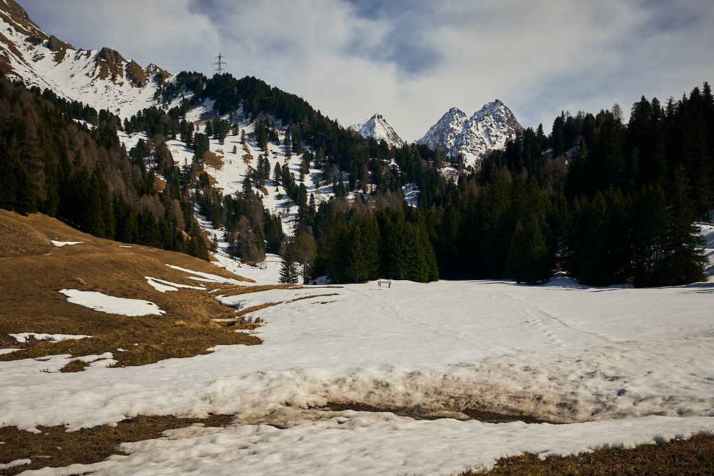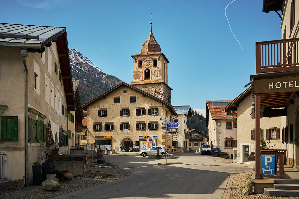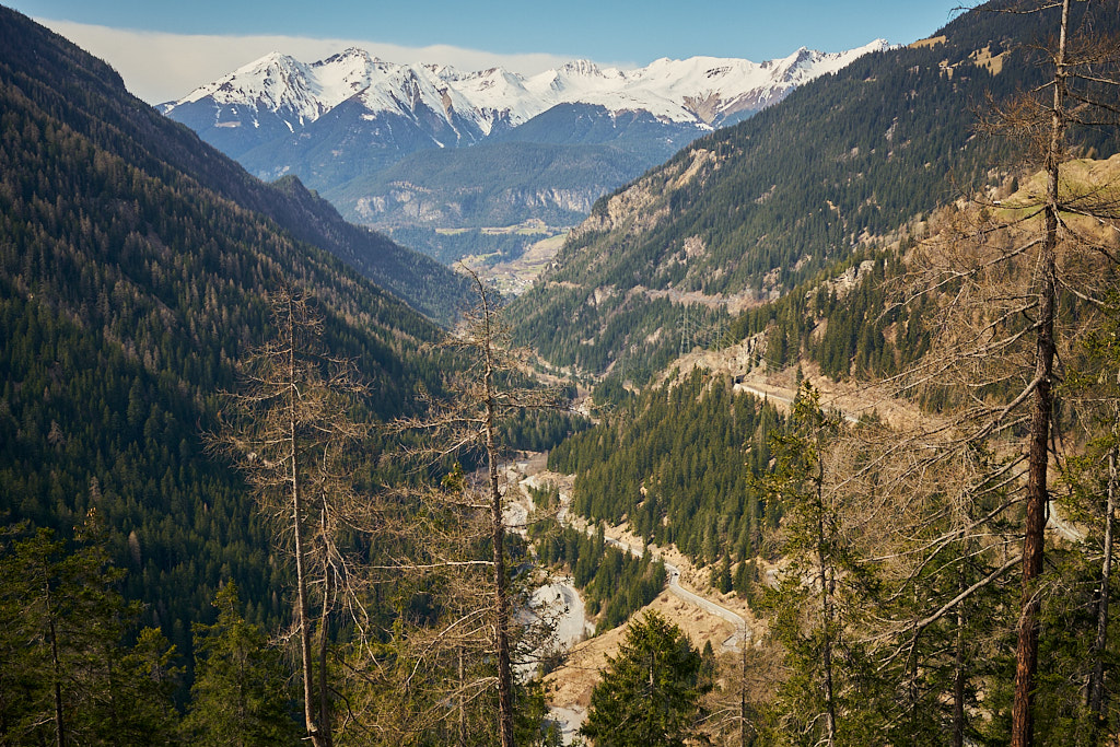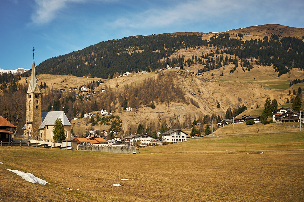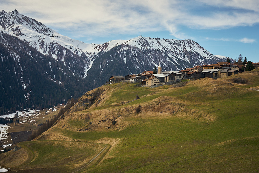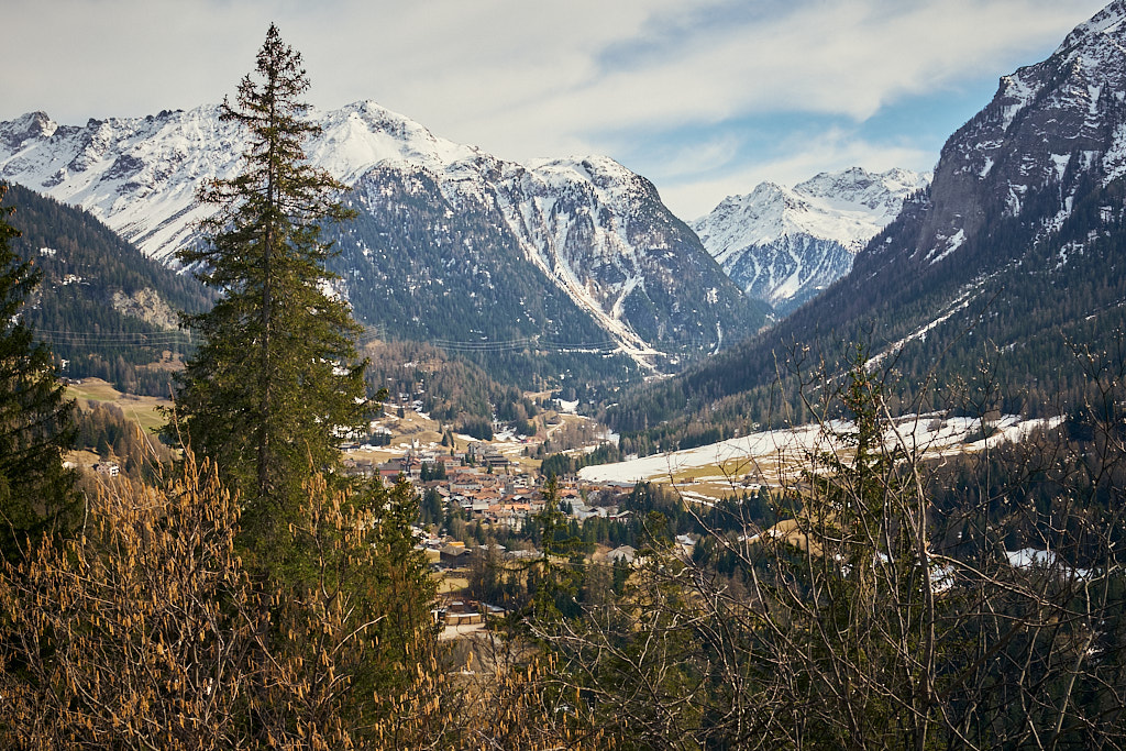 Von Bergün ging es wieder schnell und steil hinab in Richtung Filisur, wobei ich die Strasse bei Bellaluna verliess und zur südlich der Albula verlaufenden Forststrasse abbog. Dieser folgte ich bis zum Anfang der Alpstrasse nach Pradatsch und zur Ela-Hütte. Einem spontanen Impuls folgend, kurbelte ich rund 400 Höhenmeter hoch, bis ich beim Felsentor bei Sela auch hier wieder auf eine geschlossene Schneedecke auf der Strasse stiess. Nach der anschliessenden Abfahrt nach Filisur machte ich noch einen Abstecher zum Biohof Las Sorts, um meinen Rucksack mit Energienachschub in Form von Bergkäse und Eiern aufzufüllen. Derart beschwert, stand mir nur noch der Aufstieg aus dem Albulatal nach Alvaneu Dorf bevor. Mit etlichen Höhenmetern schon in den Beinen war diese Etappe zum Abschluss dann auch die anstrengendste des Tages.