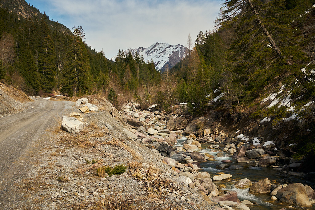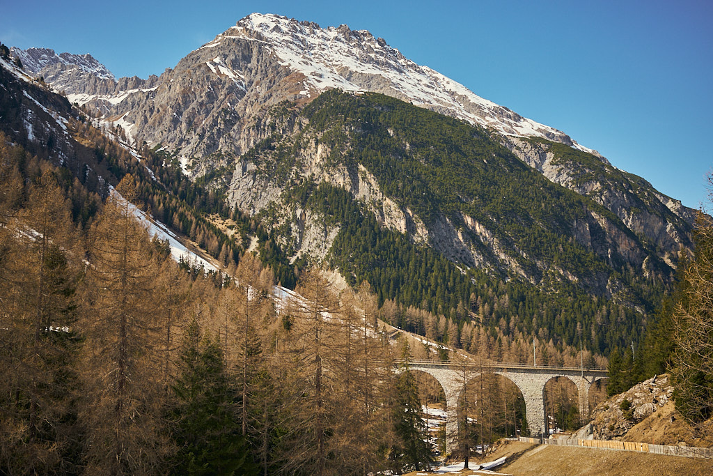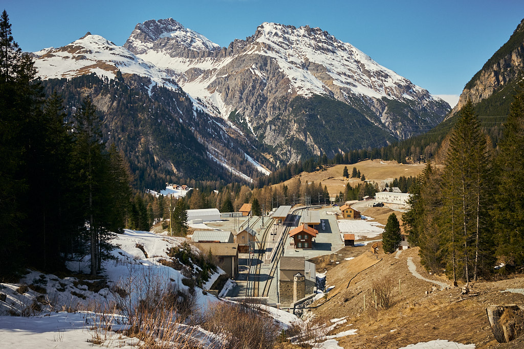 Erste „Frühlingsrekognoszierung” im Albulatal mit einer Fahrt über Filisur nach Bergün und weiter nach Preda. In diesem Jahr war ich damit eine Woche früher unterwegs als im letzten Jahr. Bis Preda war die Strasse trocken und schneefrei. Weiter oben stiess ich dann auf die gewohnte Absperrung, hinter der die Strasse zum Lai da Palpuogna und zum Albulapass noch schneebedeckt und ungeräumt war.