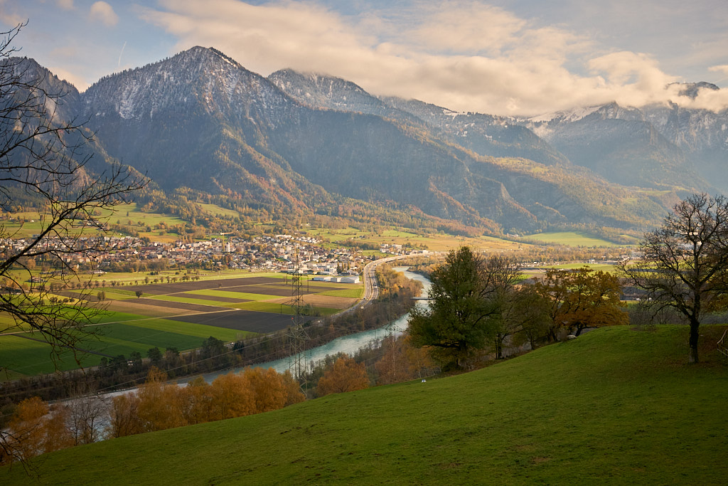 Auf den Spuren unserer Biketour durchs Rheintal vom Oktober. Diesmal aufgrund von Zeit und Wetter allerdings in einer etwas verkürzten Variante, indem ich auf der Rückfahrt von Landquart nach Chur nicht möglichst hoch über den Dörfern am Hang auf Waldwegen gefahren bin, sondern tiefer unten auf Quartierstrassen mitten durch Igis und Zizers.