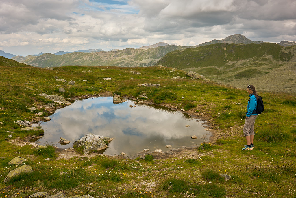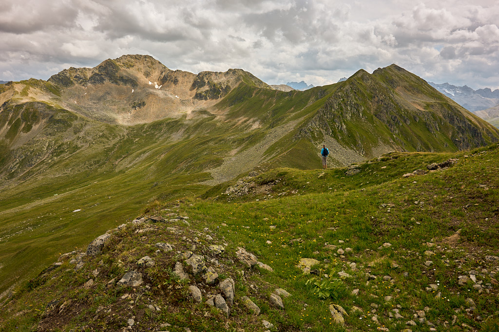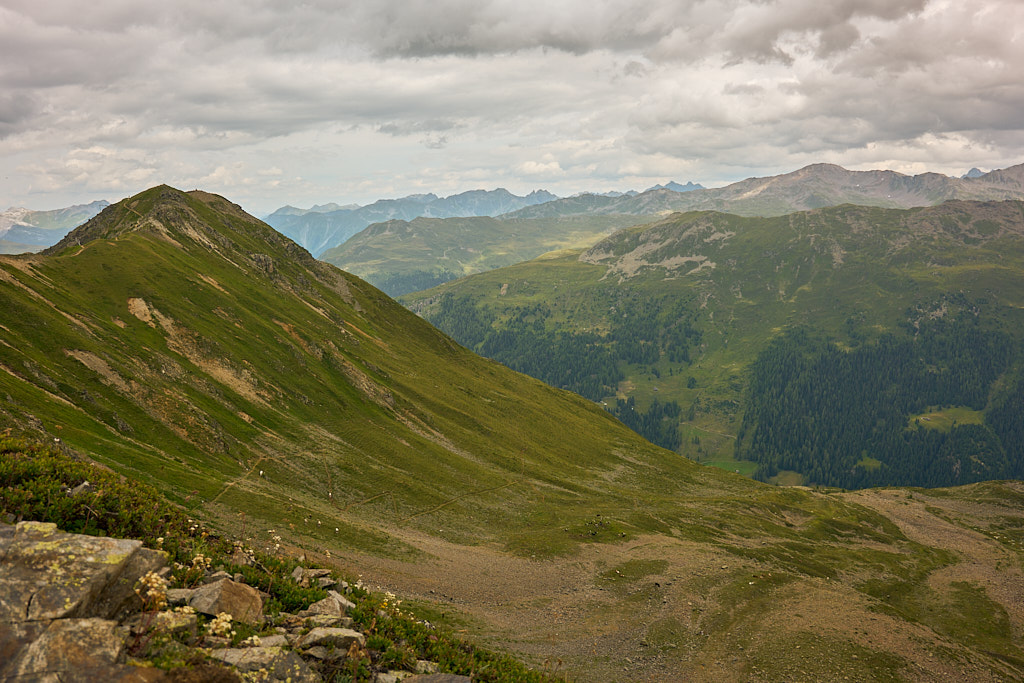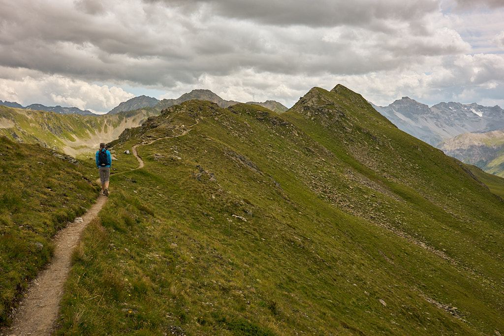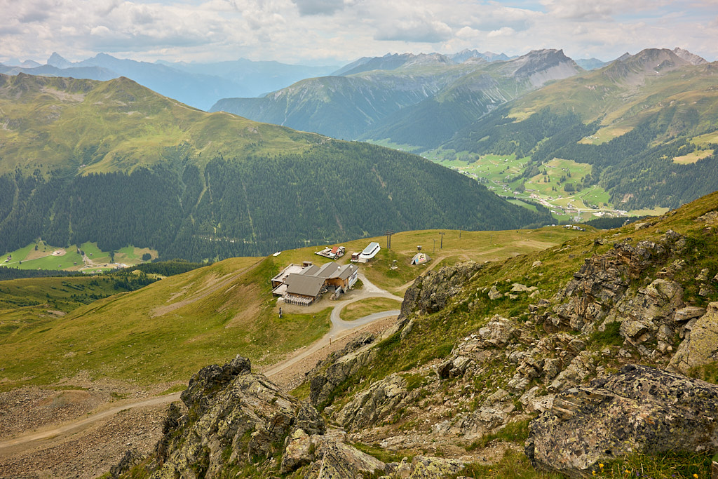 Mit der Jakobshornbahn-Gondel von Davos Platz zum Jakobshorn. Wanderung über die anschliessende Gratkette mit Jatzhorn, Rossboden, Witihüreli bis zur Tällifurgga. Von dort Abstieg durch das weite Rüedisch Tälli zur Rüedisch Tällialp und auf einem steilen Karrenweg hinunter zur Strasse ins Dischmatal, von wo aus wir in wenigen Minuten Teufi und den Stadtbus zurück nach Davos erreichten.