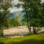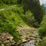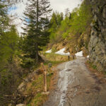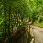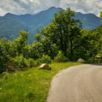 Die Abfahrt begann an einer Weggabelung vor der Alpe della Costa auf einer holprigen Waldstrasse, die bald in eine asphaltierte Strasse überging. Kurvenreich führte der Weg durch das Valle d’Arbedo nach Arbedo. Das Wetter besserte sich, die Sonne kam hervor, und die Temperatur wechselte von windig-kalt zu sommerlich warm. Der Laghetto d’Orbello war wegen des dichten Waldes nicht sichtbar. In Arbedo angekommen, folgte ich einem angenehmen Radweg entlang der Moesa durch den Wald zurück nach Grono, wo ich über Piano di San Vittore wieder den Radweg der ehemaligen Bahnlinie nach Roveredo und Grono erreichte.
