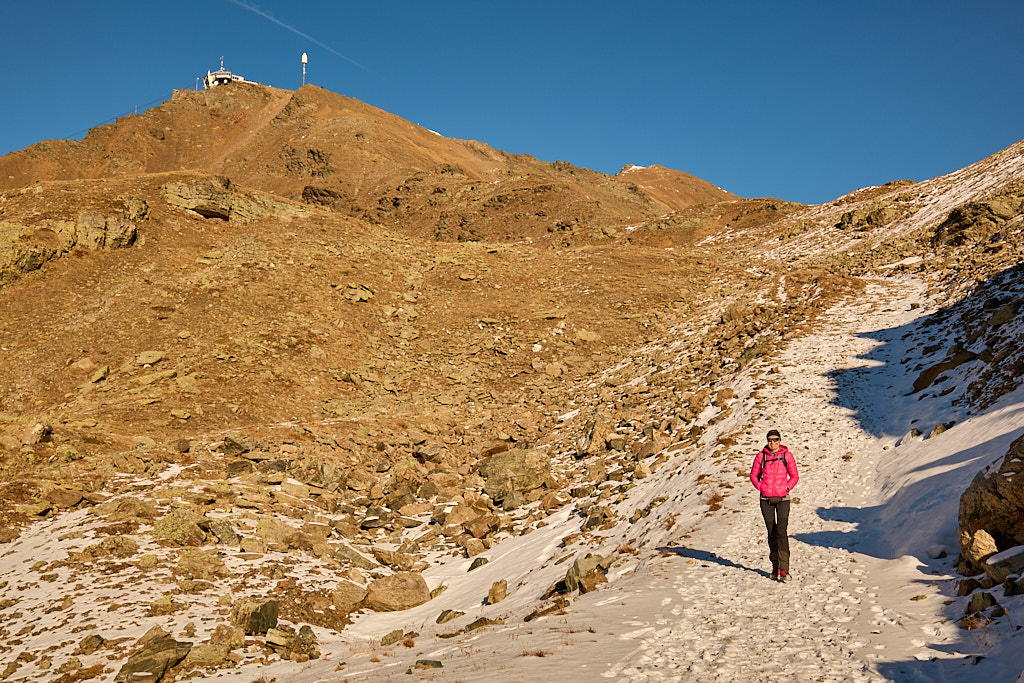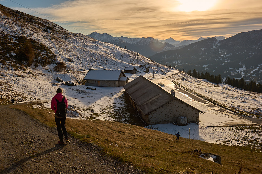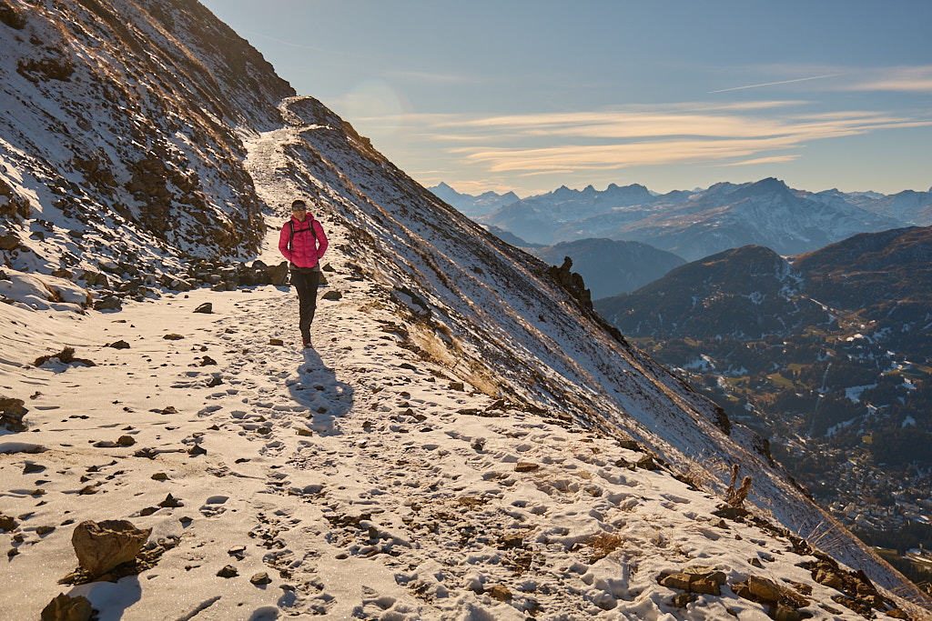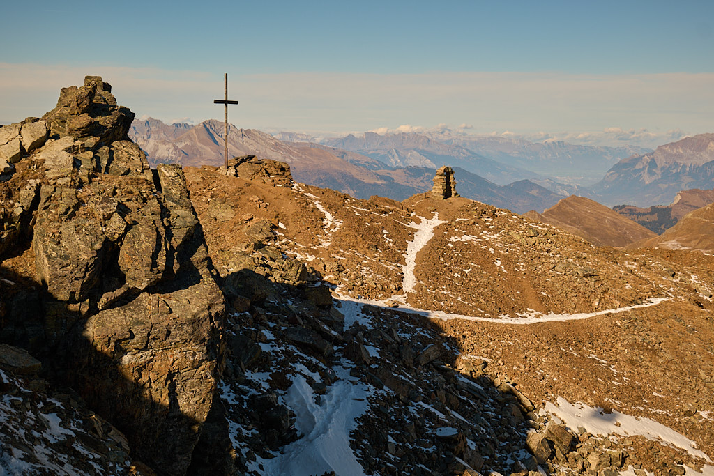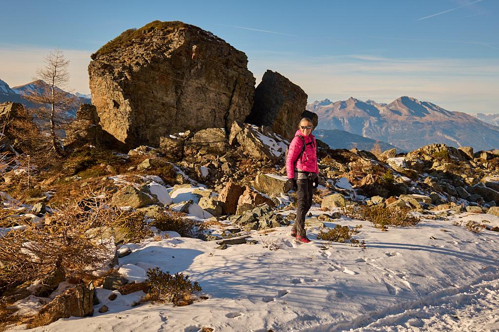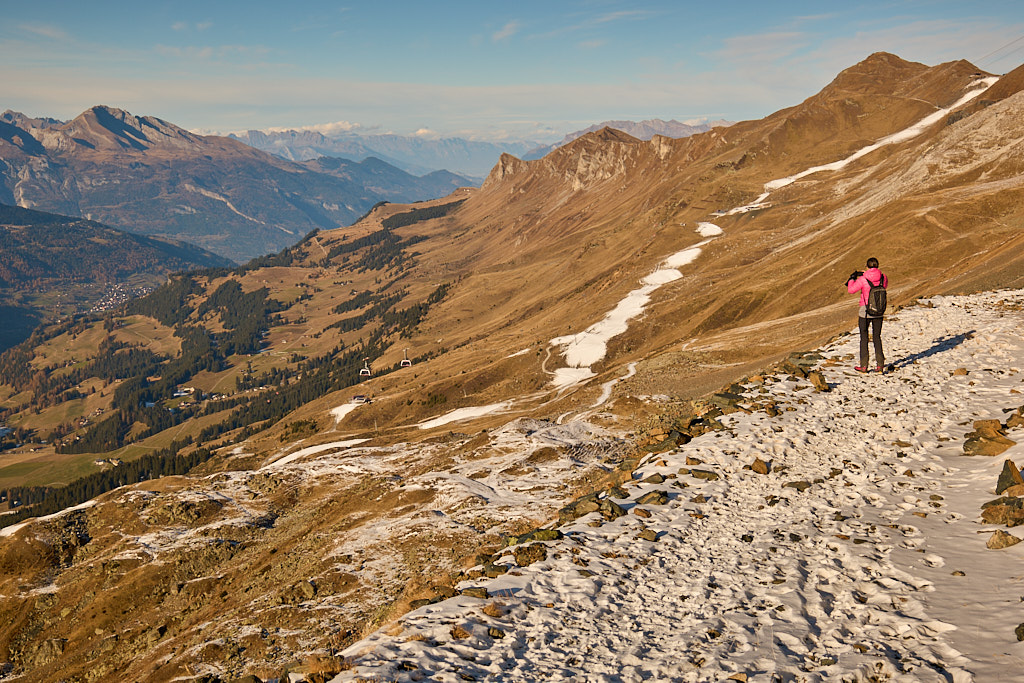 An diesem Wochenende war die Rothornbahn in der Lenzerheide für Fussgänger in Betrieb. Wir nahmen dies zum Anlass, einen Sonntagsspaziergang vom Rothorngipfel aus zu unternehmen. Nach der Bergfahrt zum Gipfel wanderten wir zunächst das kurze Stück hinüber zum Ostgipfel des Rothorns, um uns von dort einen Überblick zu verschaffen.