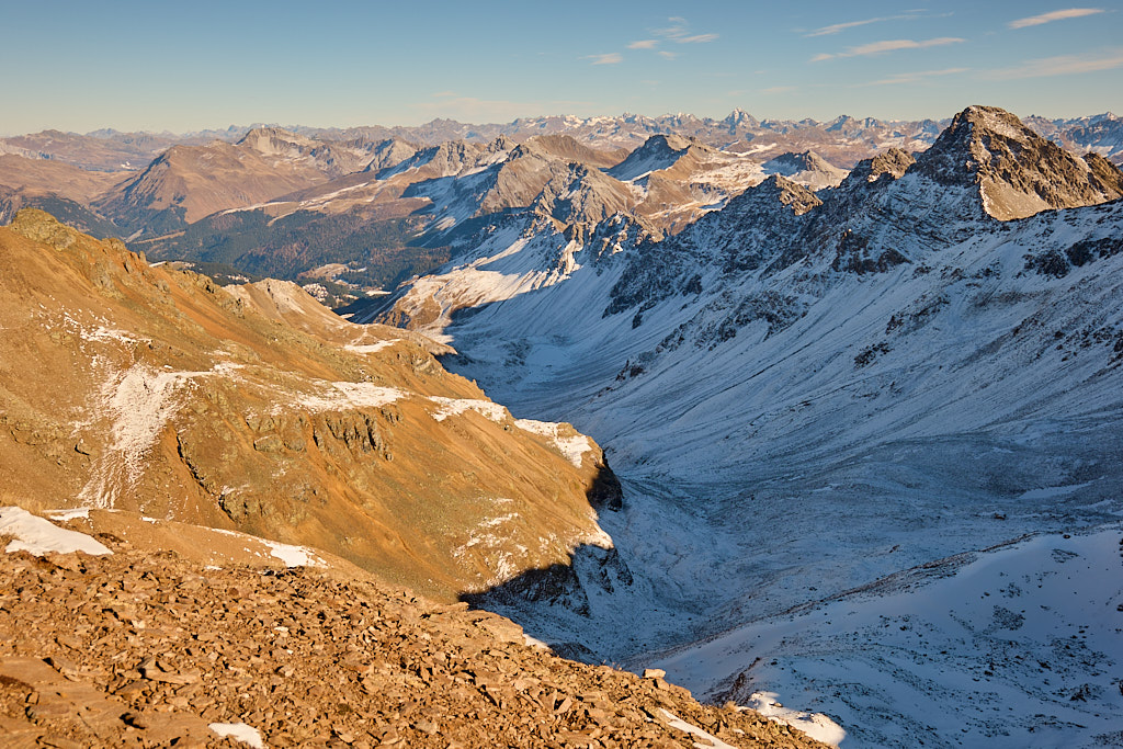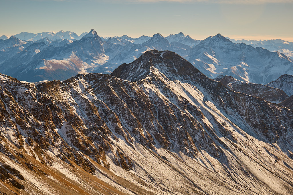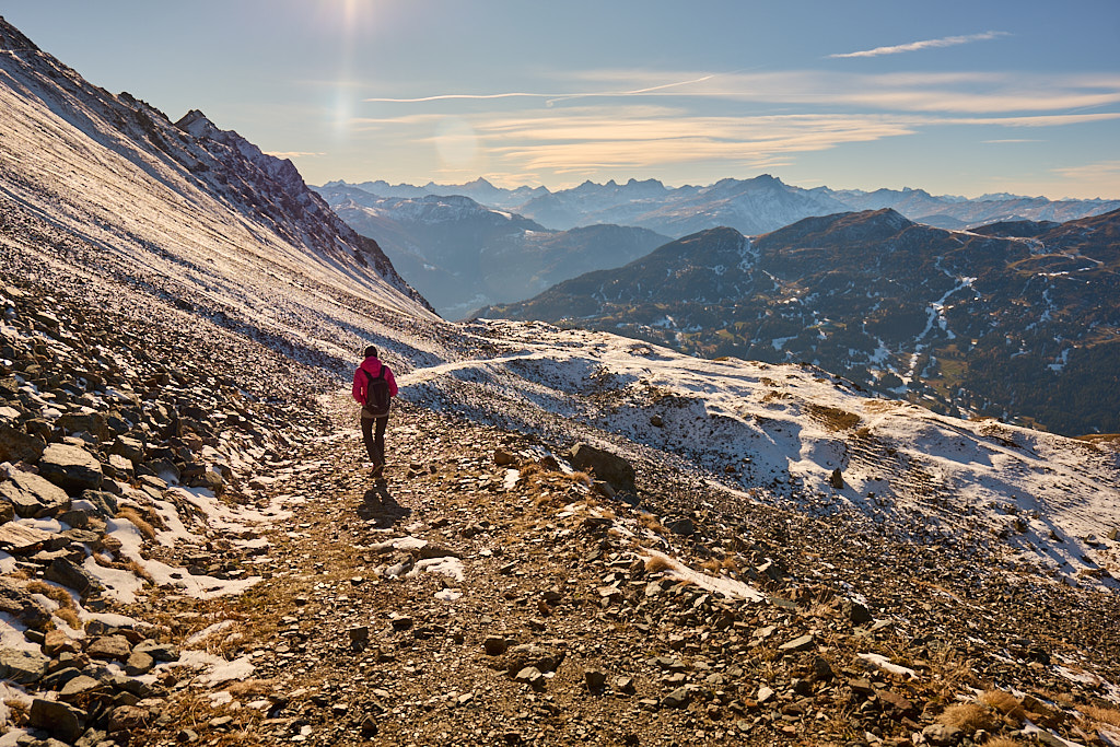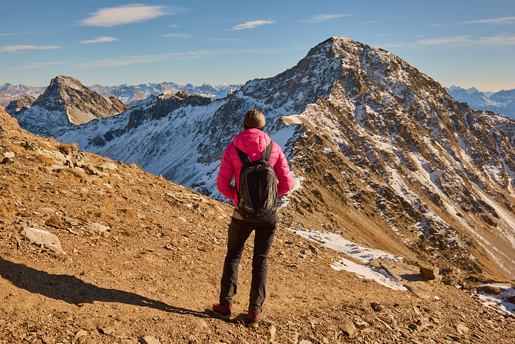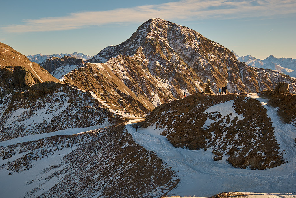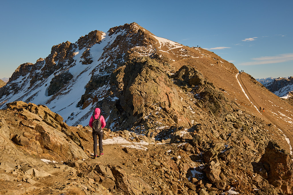An diesem Wochenende war die Rothornbahn in der Lenzerheide für Fussgänger in Betrieb. Wir nahmen dies zum Anlass, einen Sonntagsspaziergang vom Rothorngipfel aus zu unternehmen. Nach der Bergfahrt zum Gipfel wanderten wir zunächst das kurze Stück hinüber zum Ostgipfel des Rothorns, um uns von dort einen Überblick zu verschaffen.