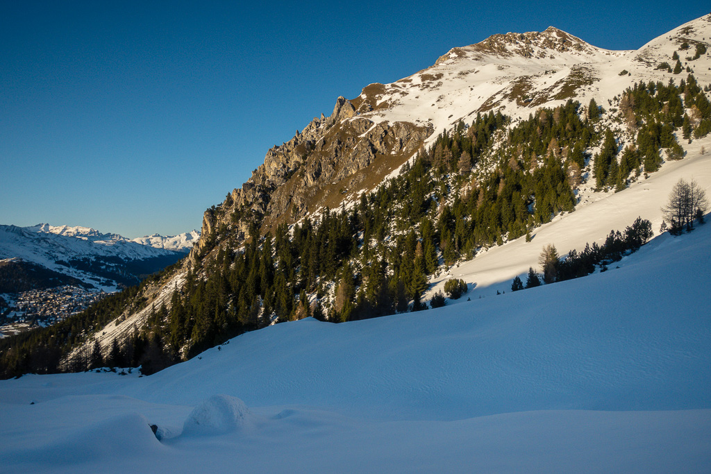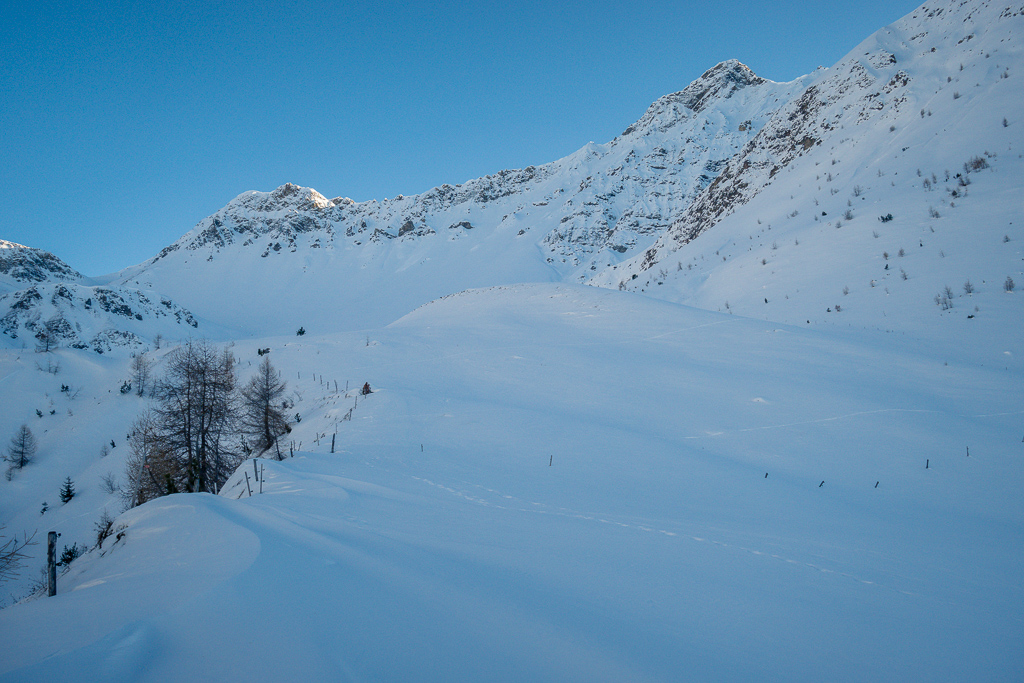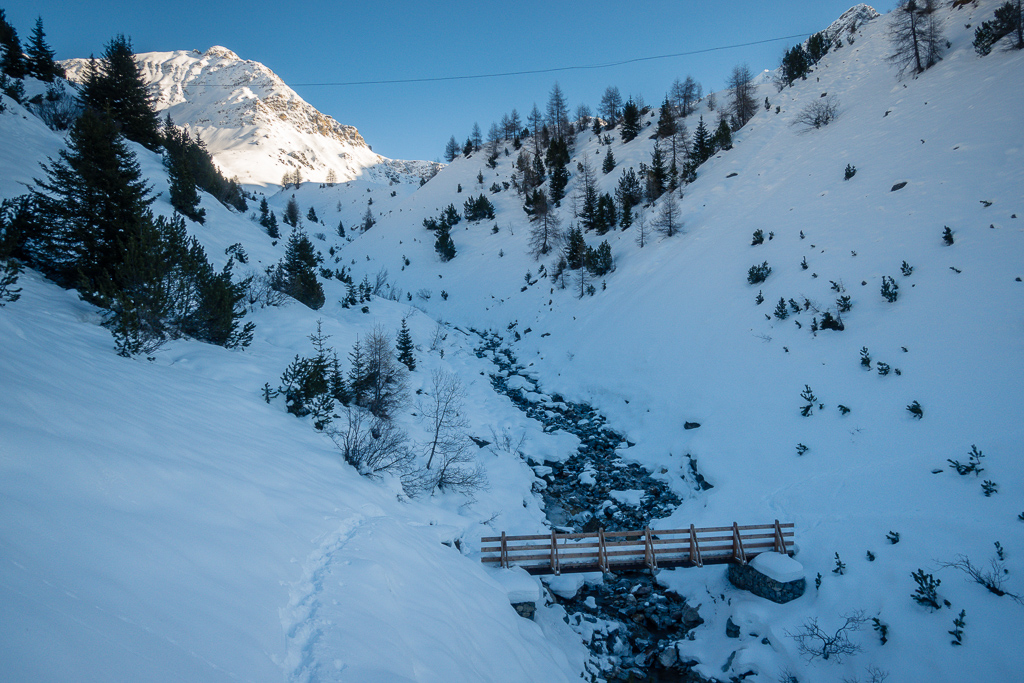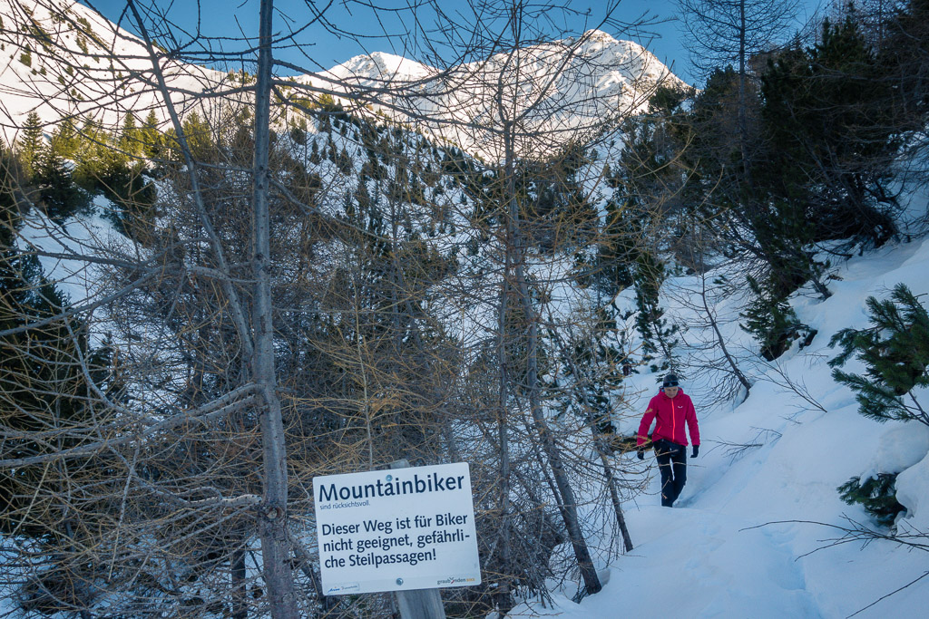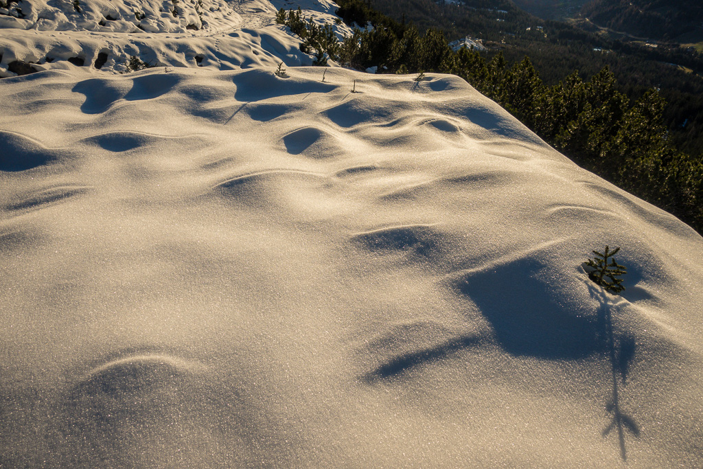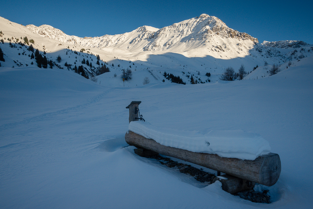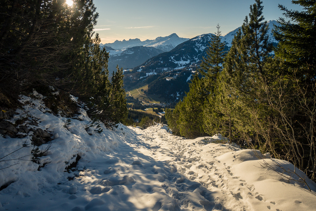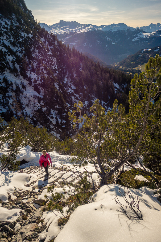 Winterwanderung von der Lenzerheide über den «Wasserfallweg» zur Alp Sanaspans und auf der verschneiten Alpstrasse wieder hinunter.