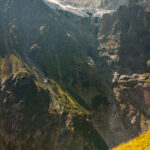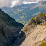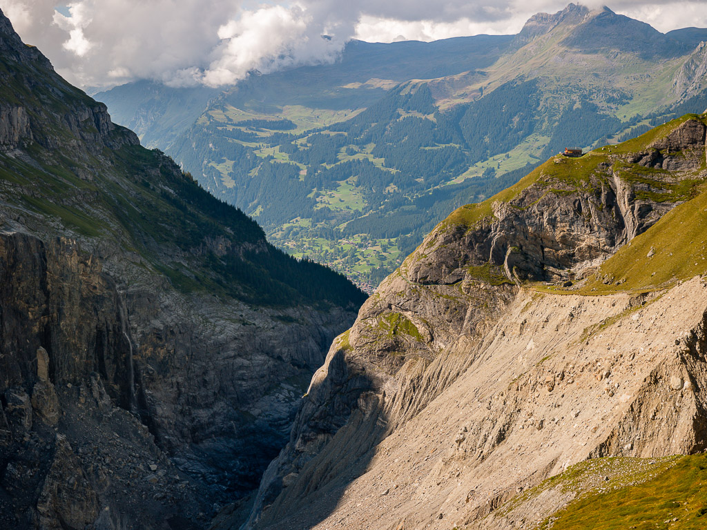 Nun dem Wegweiser nach Bäregg folgen. Der schöne Höhenweg verläuft zunächst flach, dann stetig langsam ansteigend nach Süden über den senkrechten Felswänden der tief ausgewaschenen Gletscherschlucht, wo sich früher der Untere Grindelwaldgletscher befand. Eindrückliche Blicke auf das Ostegg auf der gegenüberliegenden Seite sowie den hoch aufragenden Mättenberg zur Linken.
