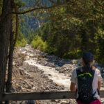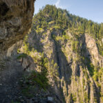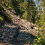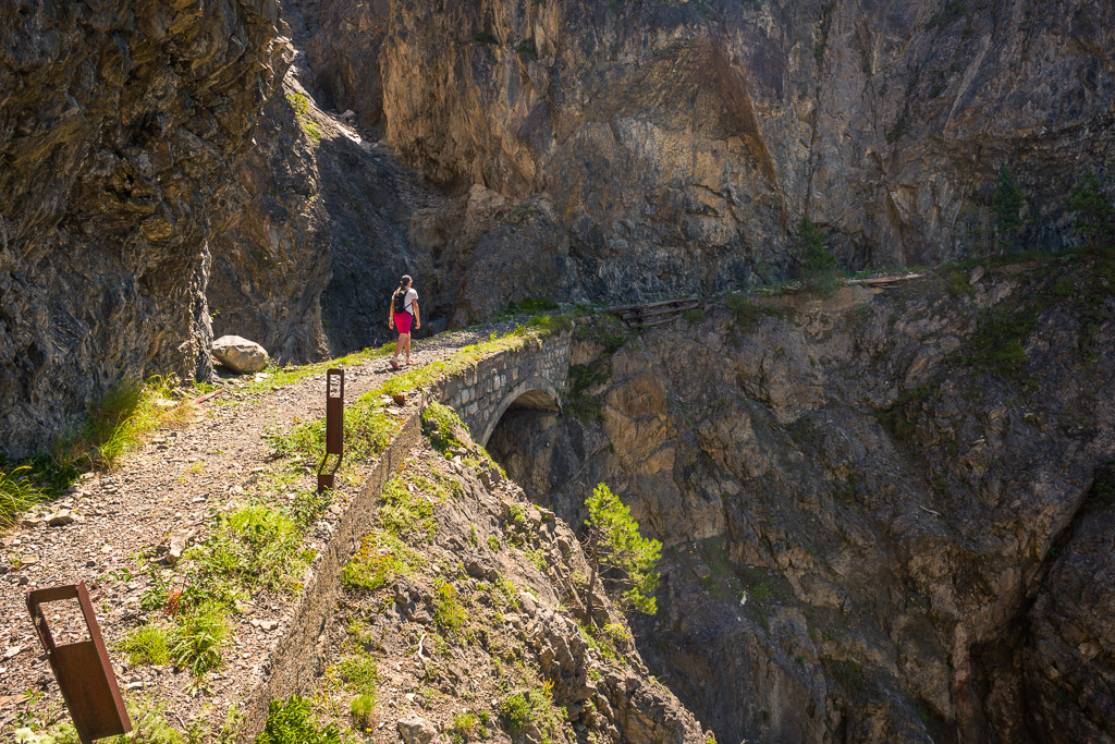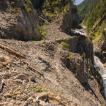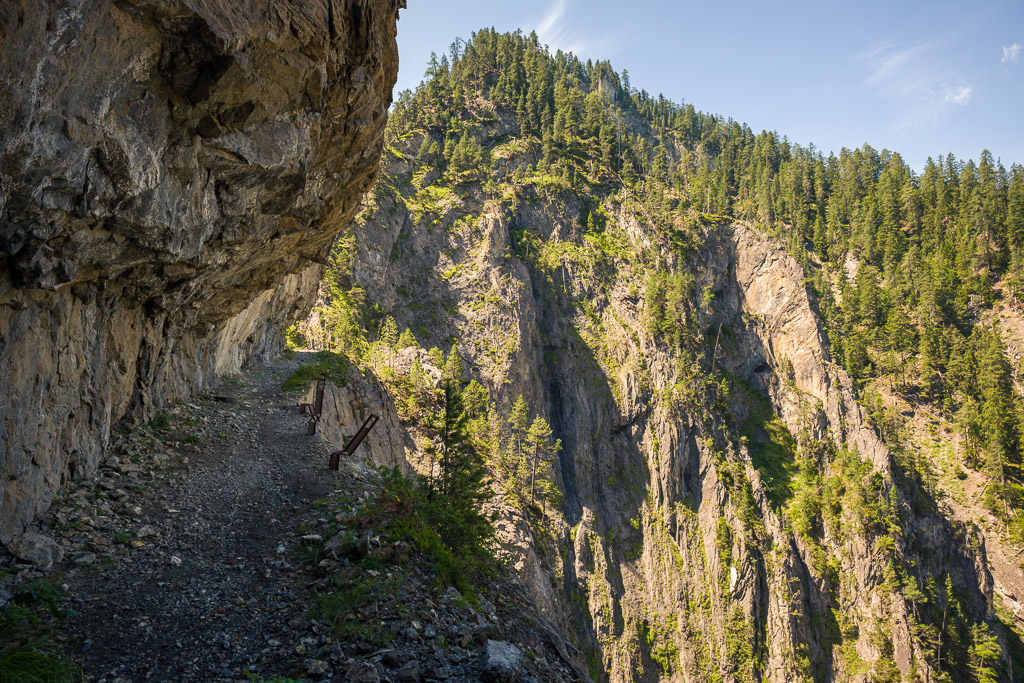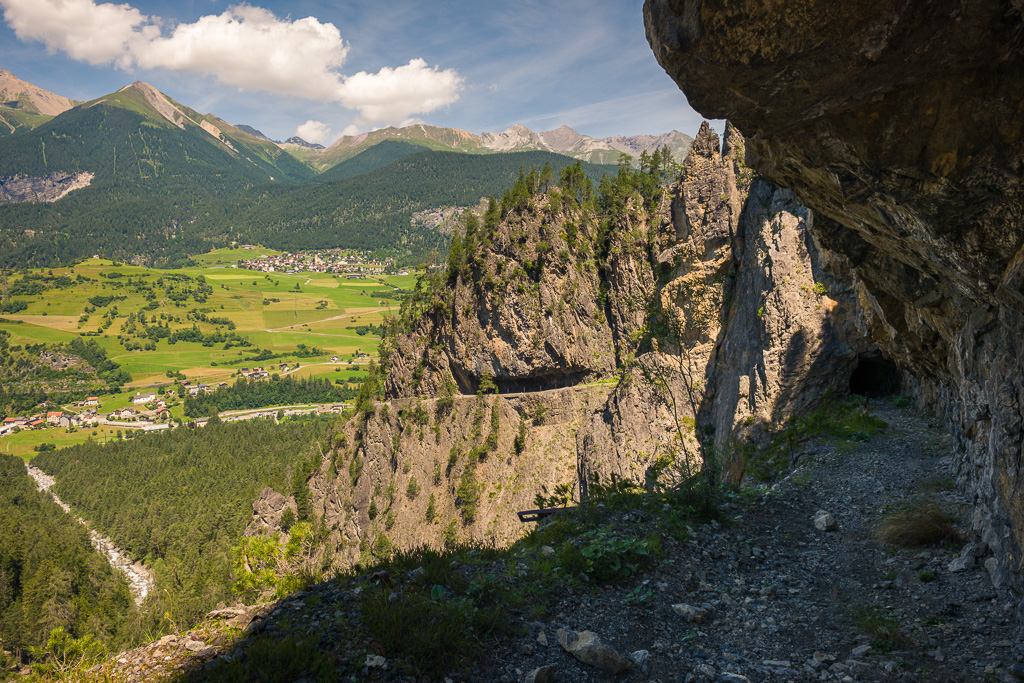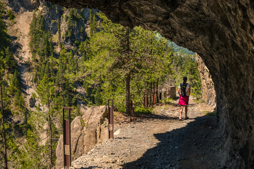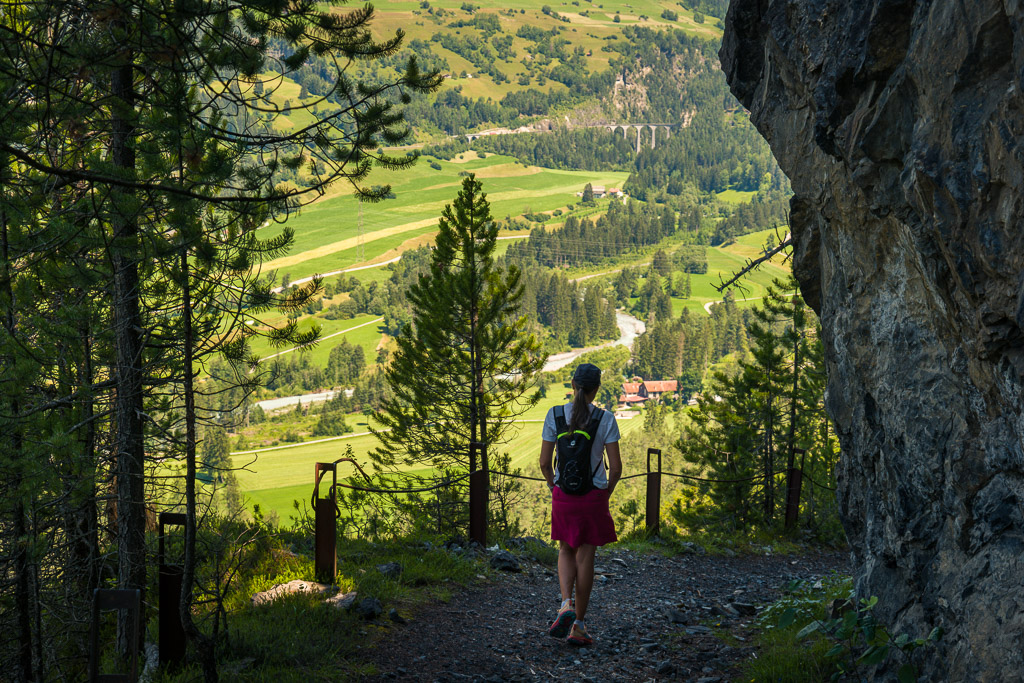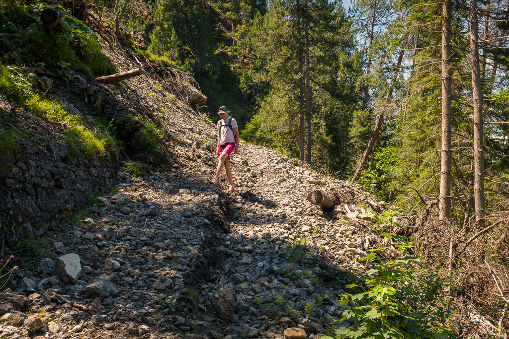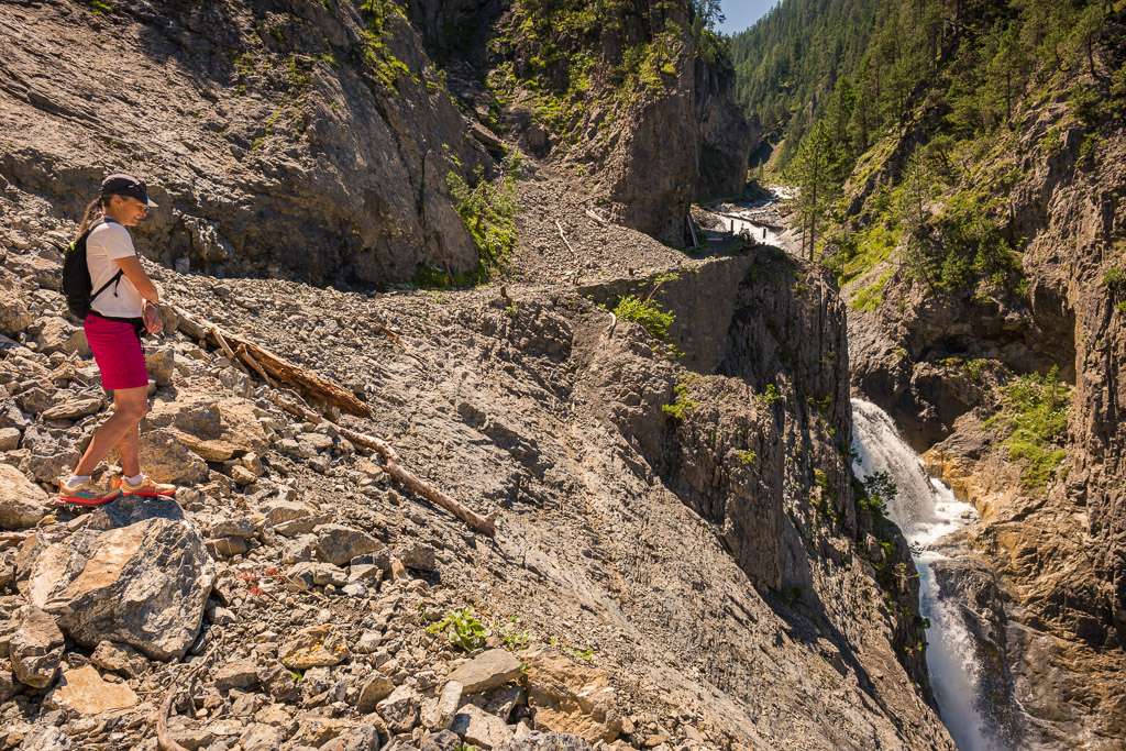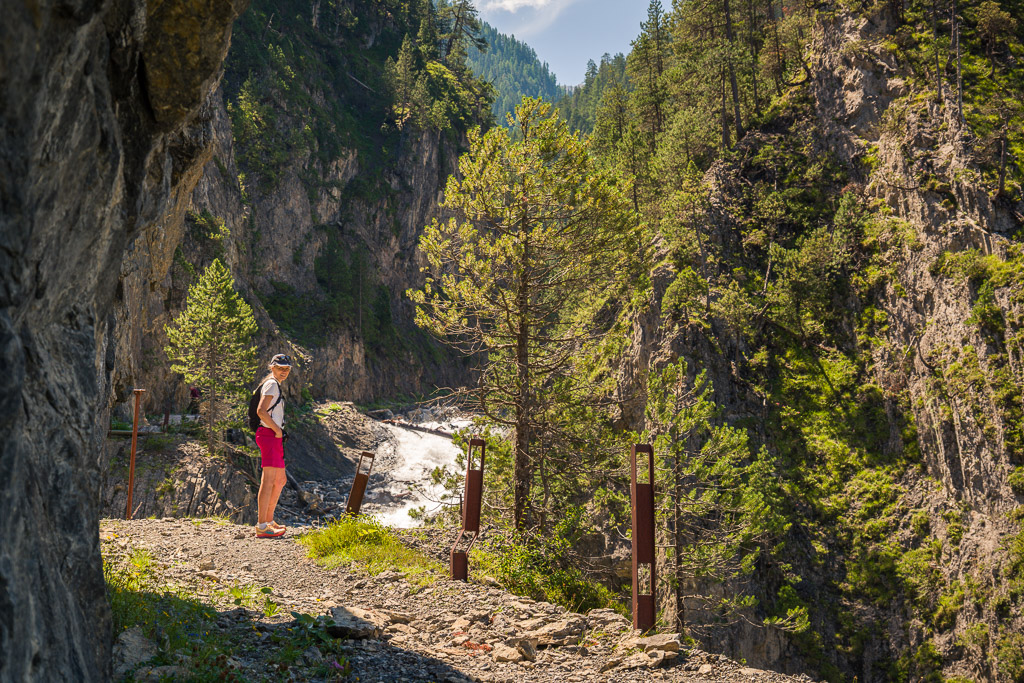 Erster Wanderversuch ins Schaftobel bei Filisur in diesem Jahr. Allerdings sind wir nur bis zum ersten Aussichtspunkt vor den Holzstegen hinter dem Wasserfall gekommen. Dort war ein einheimischer Jäger intensiv mit Schaufel und Pickel beschäftigt und ich verspürte eine akute soziale Unlust, mich mit ihm beim Übersteigen seines Tagwerks über Sinn und Zweck der zahlreichen von uns wie üblich ignorierten Warn- und Verbotsschilder am Schluchteingang auseinanderzusetzen. Ein anderes Paar, das uns mit Abstand gefolgt war, stand sichtlich vor dem gleichen Dilemma. Ich weiss nicht, was aus denen geworden ist; wir kehrten für heute jedenfalls mit leeren Händen, aber mit Fotos in der Kamera wieder um und spazierten im Wald der Albula entlang weiter nach Surava.