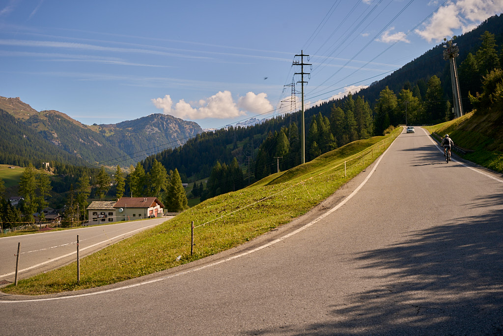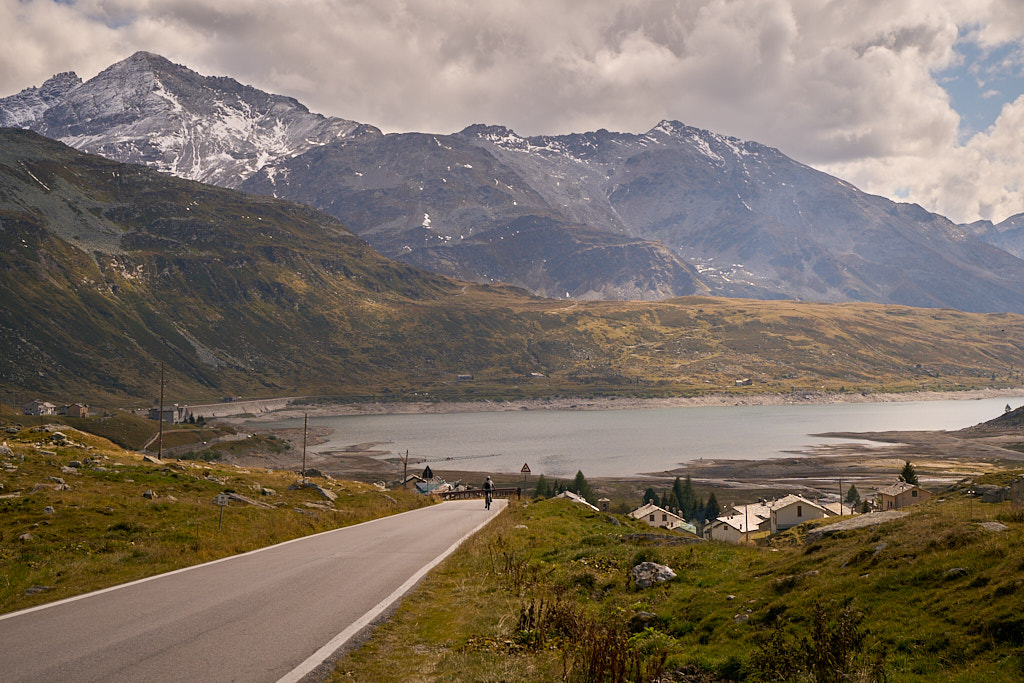 Wir starteten diesmal direkt vom Dorf Splügen am Fuss der Passstrasse aus. Der Aufstieg zur Passhöhe war landschaftlich sehr schön und von diesem vorgeschobenen Startpunkt aus waren auch nicht mehr allzu viele Höhenmeter zu überwinden. Vom Pass aus fuhren wir nach Italien ins Dorf Montespluga am gleichnamigen Stausee ab. Während ich beim letzten Mal dem Seeufer entlang bis zur Staumauer gefahren war und dort umgekehrt bin, nahmen wir diesmal bei Suretta den steilen und sehr holprigen Alpweg von Suretta zur Hügelkuppe von Andossi in Angriff.