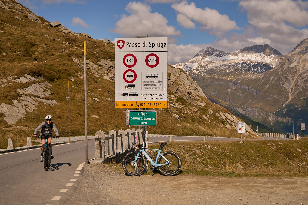 Den Splügenpass hatte ich erstmals im Frühling mit dem Gravelbike bewältigt, als er noch ziemlich verschneit war. Heute wollten wir die Passhöhe vor Wintereinbruch nochmals erreichen. Diesmal allerdings mit unseren Mountainbikes in der Hoffnung, auf der italienischen Seite einen kleinen „Offroad-Abstecher“ auf den Hängen über dem Lago di Montespluga unternehmen zu können.