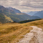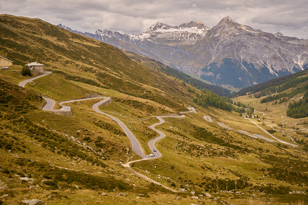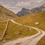 Von Stuetta fuhren wir wieder zur Staumauer hoch und über Montespluga weiter zum Splügenpass zurück. Ich fuhr ein wenig ins Gelände neben der Passstrasse hinaus und entdeckte hier den historischen Saumpfad „Via Spluga“, der zwar sehr holprig, aber zumindest auf den ersten hundert Metern ziemlich befahrbar aussah. Da von diesem Pfad aus verschiedene Verbindungswege dem Hang entlang zurück zur Passstrasse führten und wir das Abenteuer somit jederzeit abbrechen konnten, wagten wir uns spontan an die Abfahrt auf dem Saumpfad. Beim breiten Querweg auf 1970m sind wir dann wieder auf die Passstrasse zurückgekehrt, der Saumpfad schien aber noch über weitere Strecken befahrbar zu sein und müsste beim nächsten Mal nochmals genauer erforscht werden. Glücklich und zufrieden mit dieser spannenden On- und Offroad-Tour am Splügenpass erreichten wir auf der Passstrasse dann wieder Splügen.