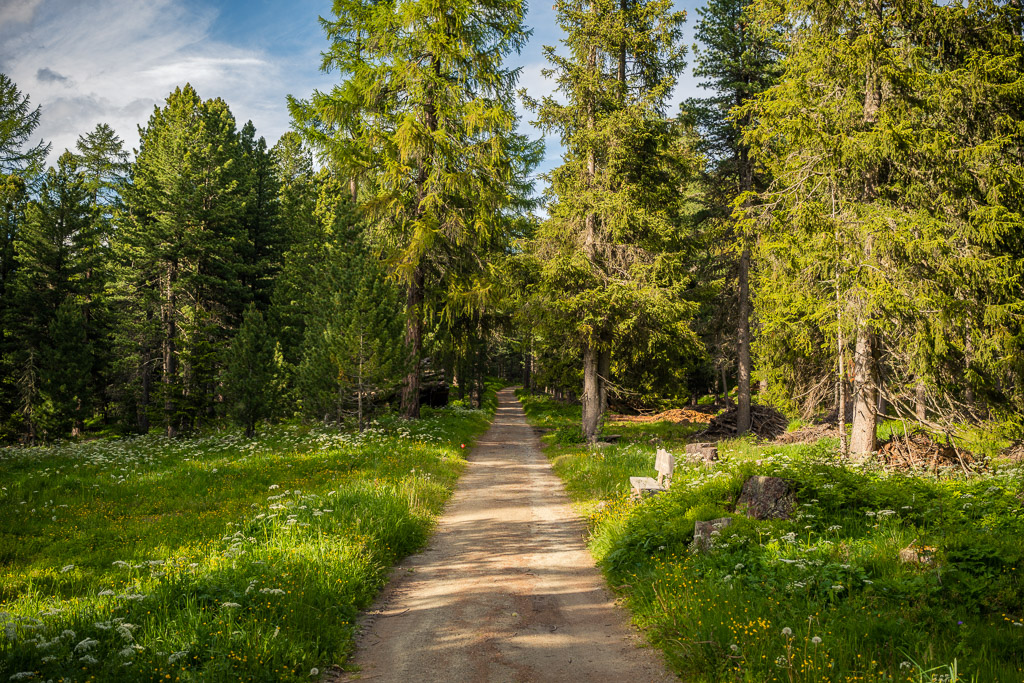 Am oberen Dorfrand begann erneut ein sehr schöner Waldweg, der nunmehr dem Hang entlang und ohne grössere Steigungen verlief. Bevor ich es realisierte, kam ich schon beim grossen Parkplatz am Ortseingang von Bivio an. Mein Ziel, eine stressfreie Route nach Bivio abseits der Hauptverkehrsachsen zu finden, war somit erfolgreich erreicht.