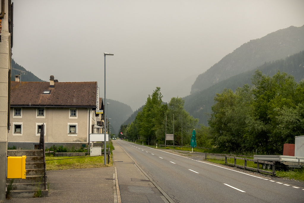 Von hier aus wäre es nur ein Kilometer zum Gasthof am Ende der Alpstrasse gewesen, zu dem wir im letzten Jahr mühsam hochgekeucht waren. Ich erwog noch kurz, dorthin zu fahren, entschied mich dann aber dafür, etwas anderes und Neues auszuprobieren: nämlich ob es möglich wäre, auch weiterhin unter grösstmöglicher Umgehung der vielbefahrenen Durchgangsstrasse bis nach Bivio zu gelangen.