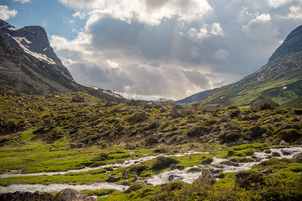 Ich beschloss in diesem Dilemma, zunächst 40 Minuten in Richtung Julierpass hochzustrampeln und zu schauen, wie weit ich kommen würde. Falls es nicht recht voran ginge, hätte ich dann immer noch 20 Minuten Zeit für die Rückfahrt bergab nach Bivio, um den nächsten Bus nach Tiefencastel zu erwischen.