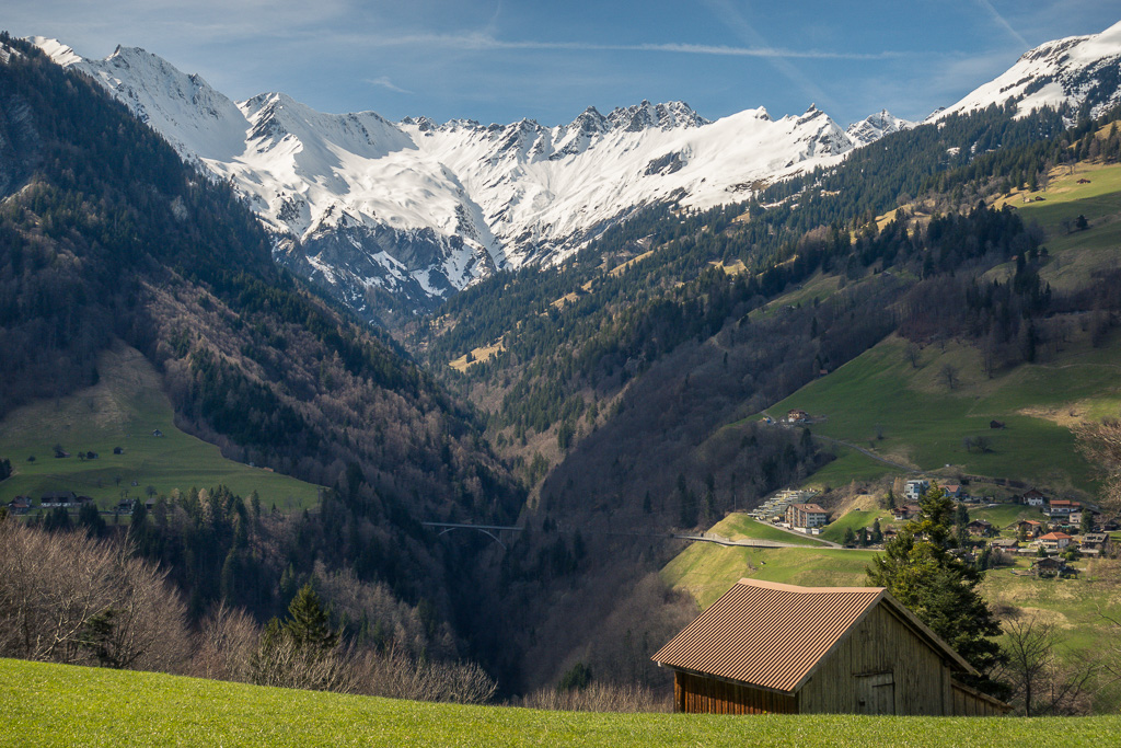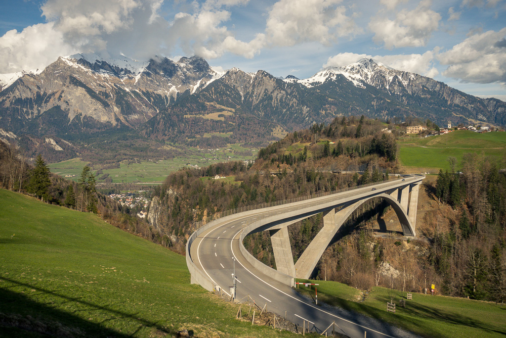Beim Mapreggsee überquerte ich die Staumauer, um auf die westliche Talseite zu gelangen. Danach erreichte ich die sehr aussichtsreich gelegenen Dörfer von Vasön und Valens. Etwas später bog ich dann links auf die alte Valenserstrasse ab, auf der ich die letzte Etappe ohne Autoverkehr nach Bad Ragaz hinabfahren konnte.