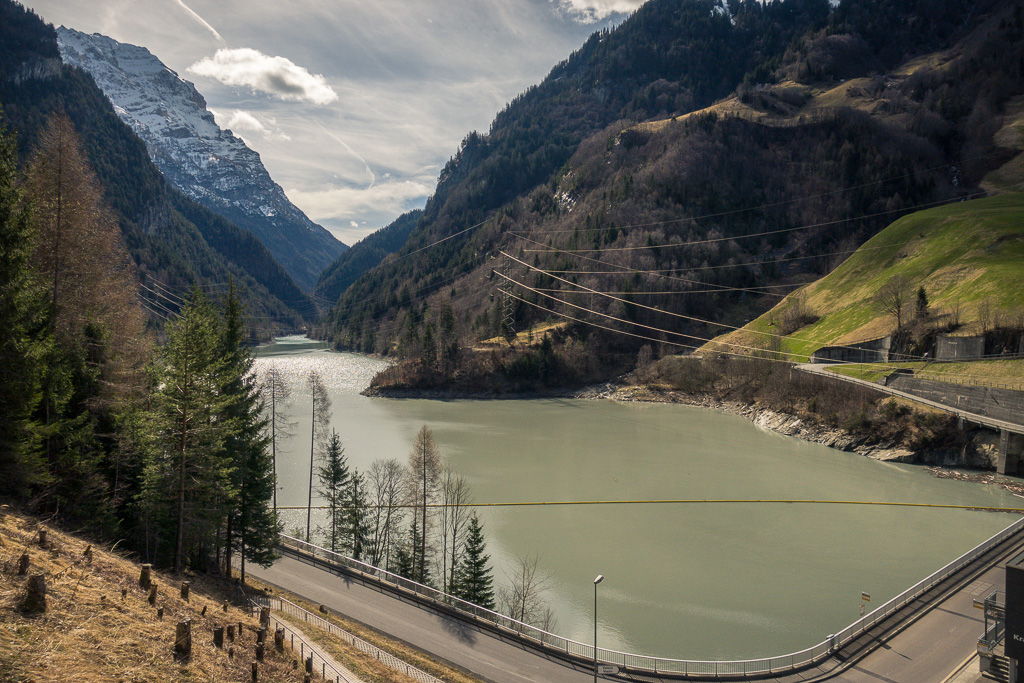 Danach ging es durchs Zentrum von Pfäfers – hier dominierten eine grosse Klosterkirche sowie eine psychiatrische Klinik – weiter talaufwärts in Richtung Vättis. Bei der Staumauer vom Mapreggsee mit seinen grossen Kraftwerkanlagen mündete die andere Strasse von der westlichen Talseite ein, der ich dann bei der Rückkehr folgen würde.