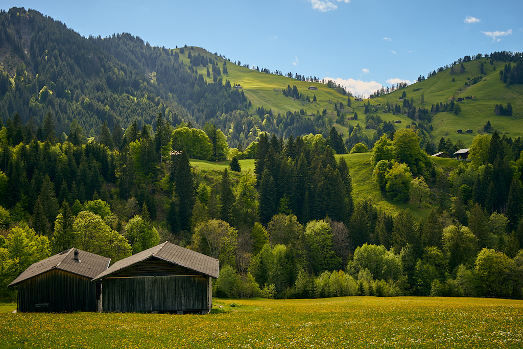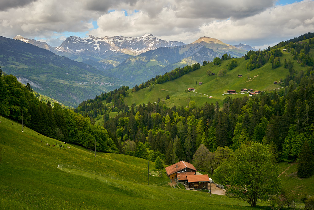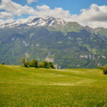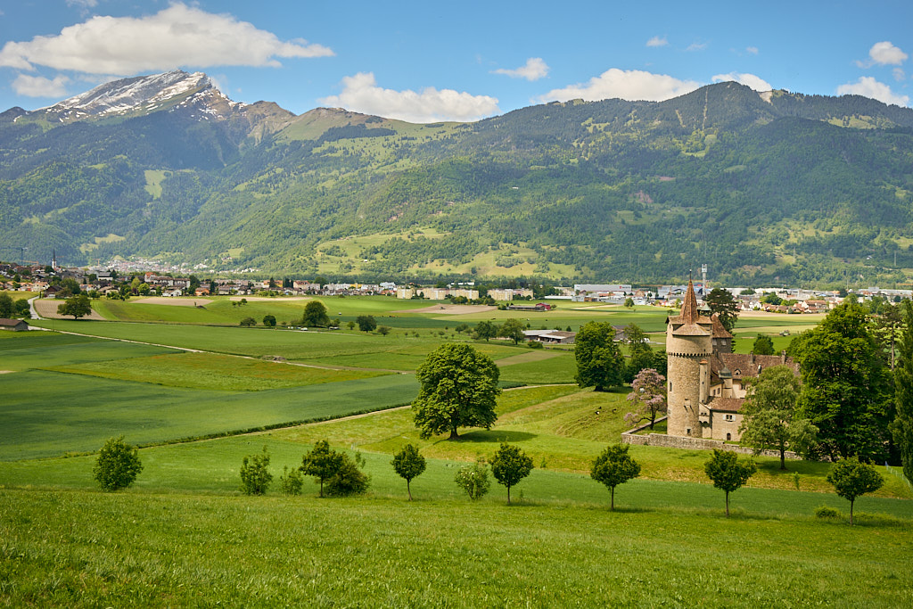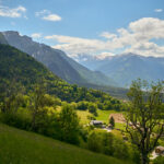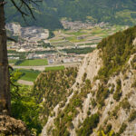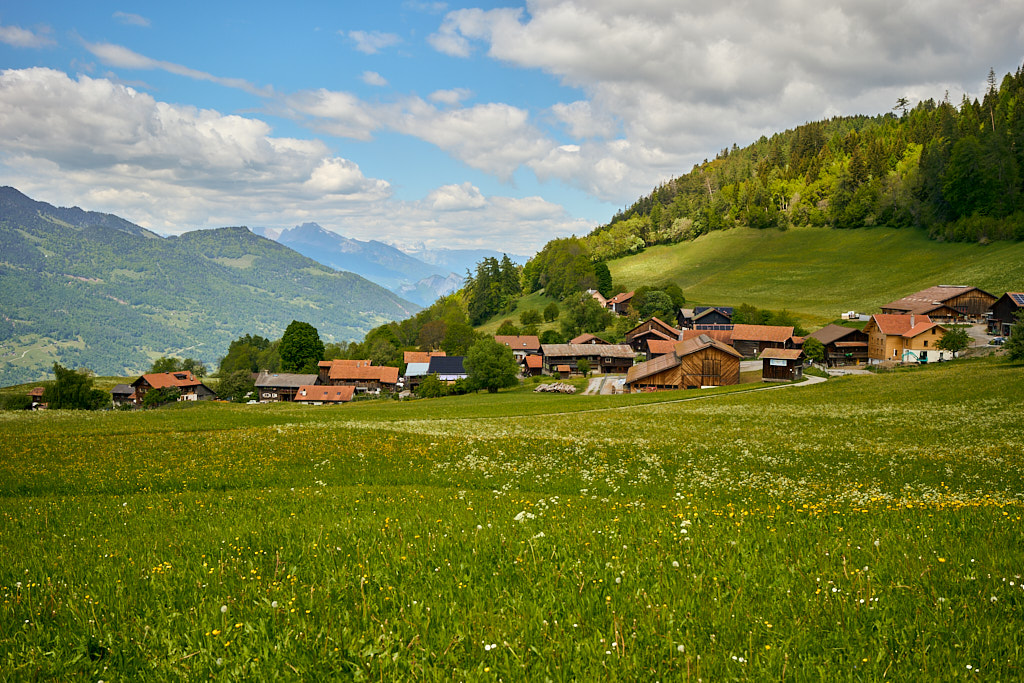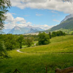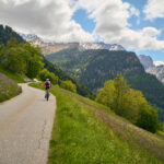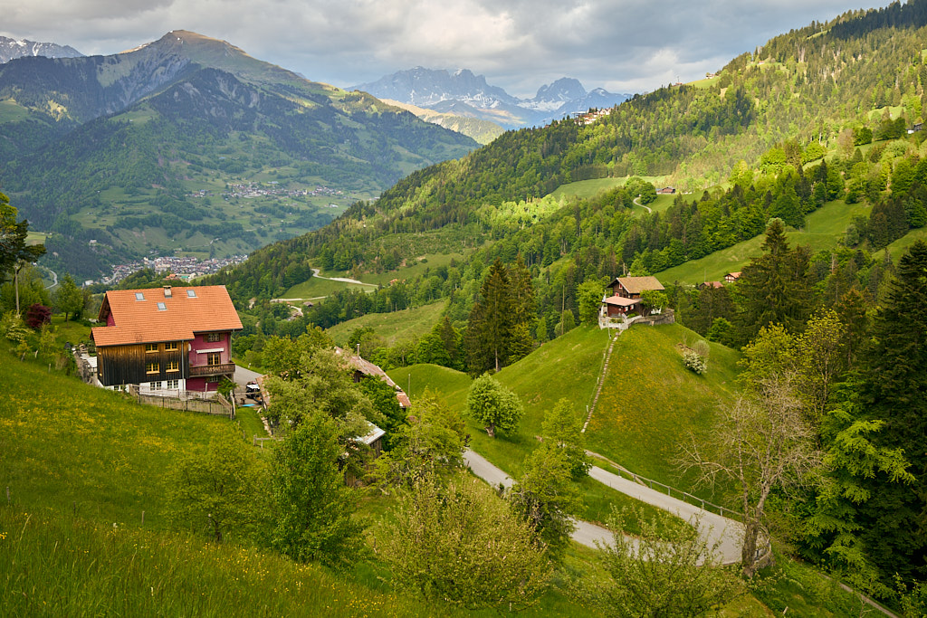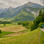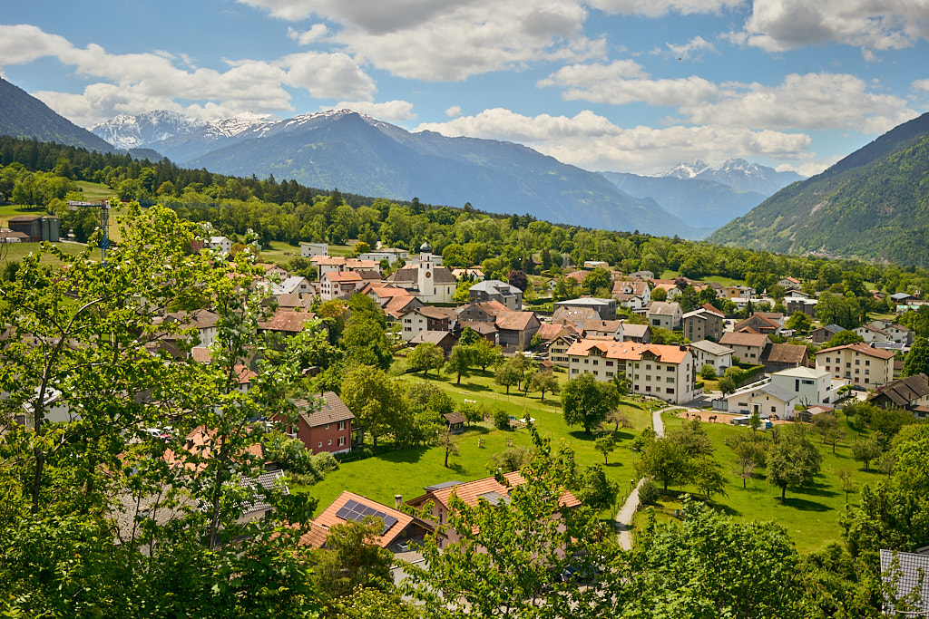 In Trimmis begann dann der ambitioniertere Teil der Tour. Vor uns türmten sich die Bergflanken östlich des Rheintals auf, eine schier abweisende Wand, die es auf über 1000 Höhenmetern Strasse zu bezwingen galt. Der Anstieg zu den Dörfern Says und Obersays fühlte sich, um es vorsichtig auszudrücken, unendlich an. Monotonie machte sich breit, einzig unterbrochen von der schieren Anstrengung. Immerhin, die Tiefblicke auf das Rheintal waren prächtig (sofern man noch die Kraft hatte, sie zu registrieren), und das Konzert der blühenden Wiesen, zirpenden Grillen und zwitschernden Vögeln versuchte redlich, uns über die mühsame Plackerei hinwegzutäuschen.