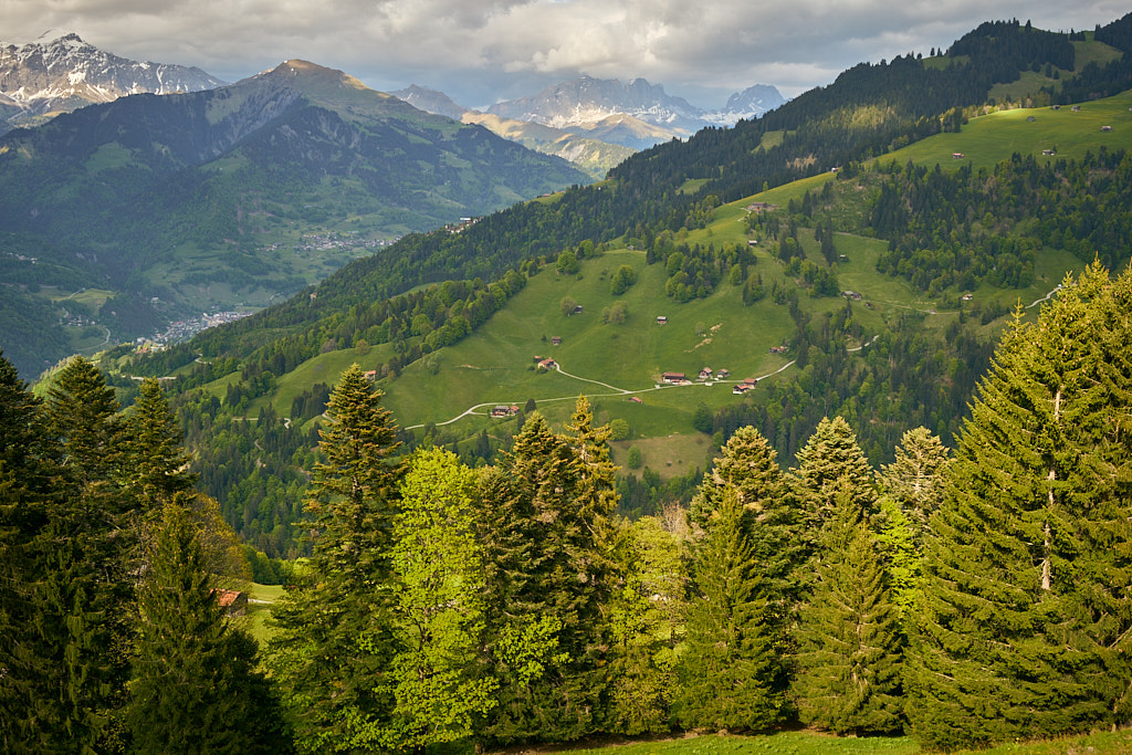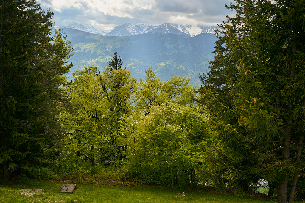 Der Aufstieg war, wenig überraschend, kein Spaziergang. Oben angekommen folgte die Ernüchterung: Die erhoffte Panoramasicht ins Rheintal? Von dichtem Wald gründlich vereitelt. Die Ironie des Schicksals schlug hier voll zu. Immerhin: Auf der gegenüberliegenden Seite öffnete sich der Blick weit ins Prättigau hinein. Die noch winterlich anmutende Schesaplana nebst Sulzfluh, Drusenfluh und anderen Gipfeln im Grenzgebirge zur Österreich boten einen mehr als passablen Ersatz und entschädigten zumindest teilweise für die entgangene Rheintal-Aussicht.