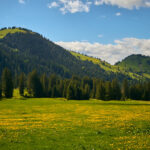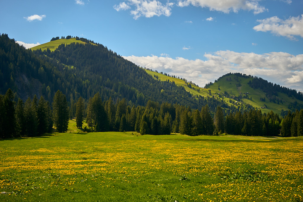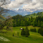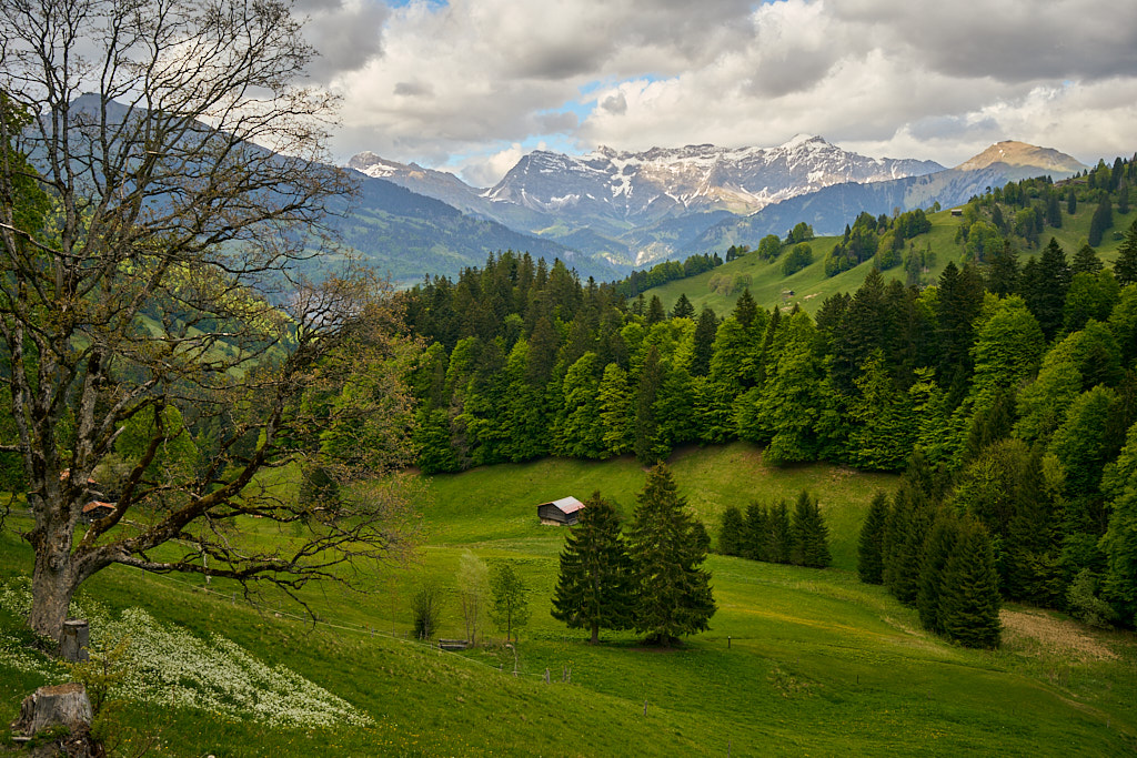 So erreichten wir schliesslich die Alp Vordersäss. Und siehe da, die Natur zeigte doch noch Milde! Im Hintergrund präsentierten sich die Gipfel von Fulberg, Tüfelsch Chopf und Hochwang. Noch gut verschneit, wirkten sie tatsächlich imposant und verliehen der gesamten Szenerie einen Hauch von… sagen wir, alpiner Erhabenheit mit fernöstlichem Flair.