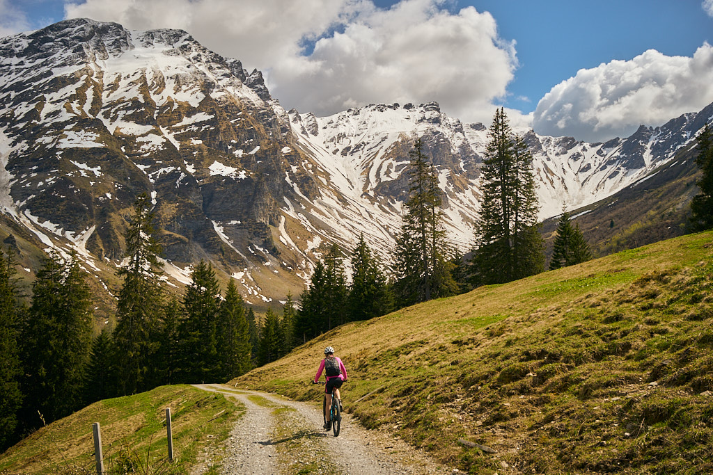 Nach Stams gab es eine kurze Erleichterung in Form einer Abfahrt. Doch das Prättigau wäre nicht das Prättigau, wenn es einem den Genuss länger gönnen würde. Der Alpweg entlang der Hänge von Zanütsch verwandelte sich schnell in ein tückisches welliges Terrain aus kurzen Abfahrten und dafür umso gemeineren Steigungen. Ein ständiges Auf und Ab, das die Beine weiter forderte.