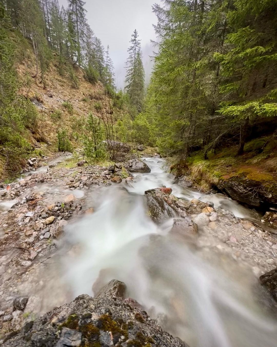 Frühlingsregen und rauschendes Wasser im Schmittner Bach.