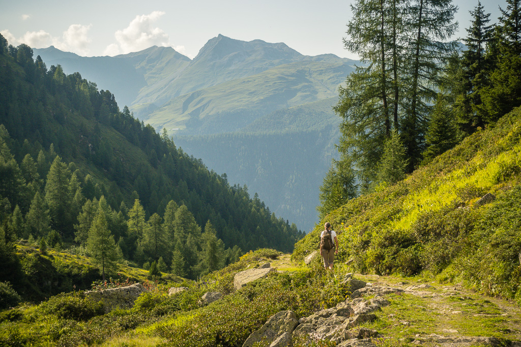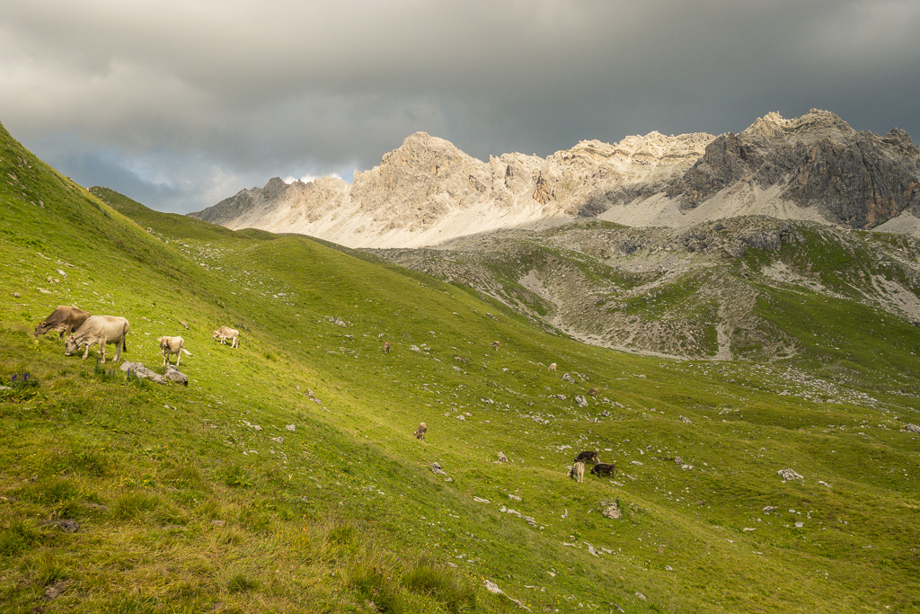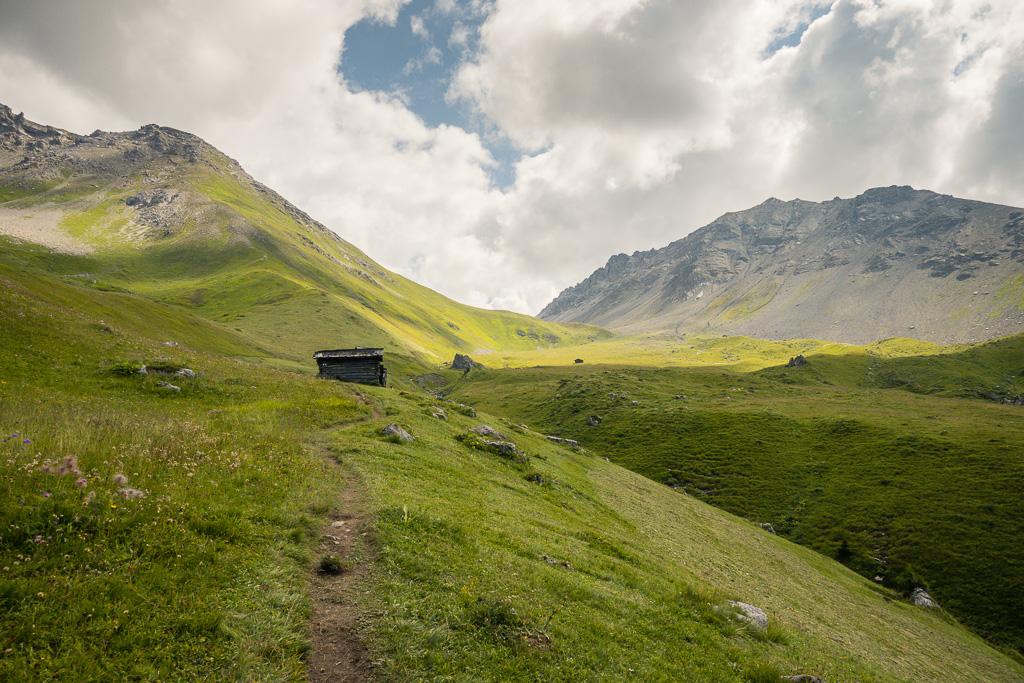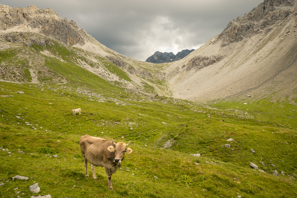 Durch das Dorf bis ans obere Ende und weiter auf der Alpstrasse zur Oberalp (Restaurant). Ab Oberalp beginnt der Wanderweg zur Fanezfurgga. Wir folgen ihm bis zu den Hütten von Fanezmeder auf 2200m.