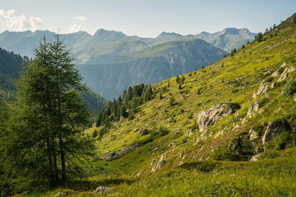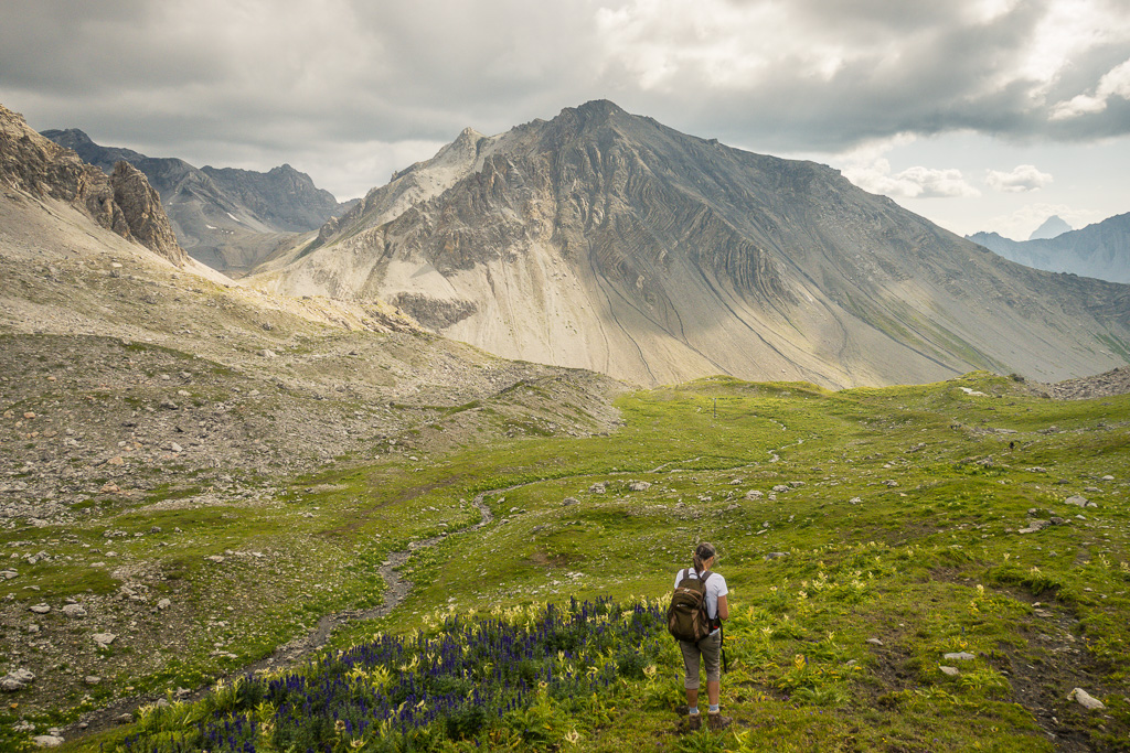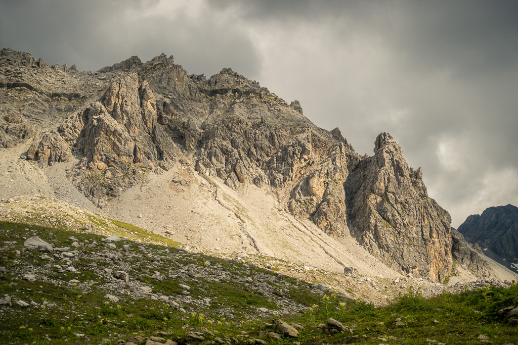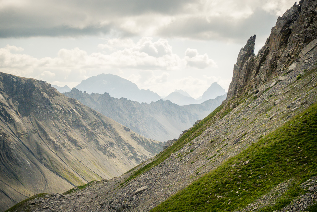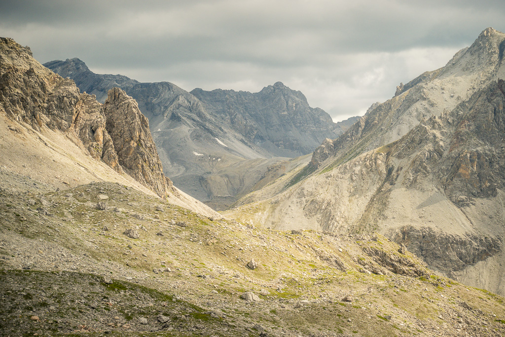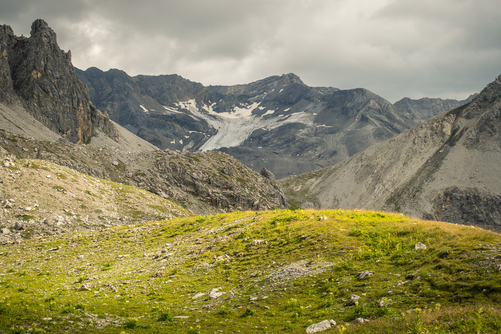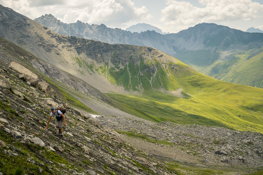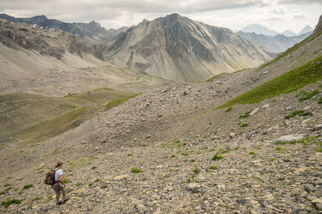 Auf gleichem Weg bis zu P.2798 zurück. Dann steiler Abstieg über felsdurchsetzte Grashänge ins Bärentälli zu einem kleinen See. Vom See zum Ausgang des Bärentälli, wo man wieder auf den Wanderweg von der Oberalp zur Fanezfurgga stösst. Auf diesem zurück nach Davos Monstein.