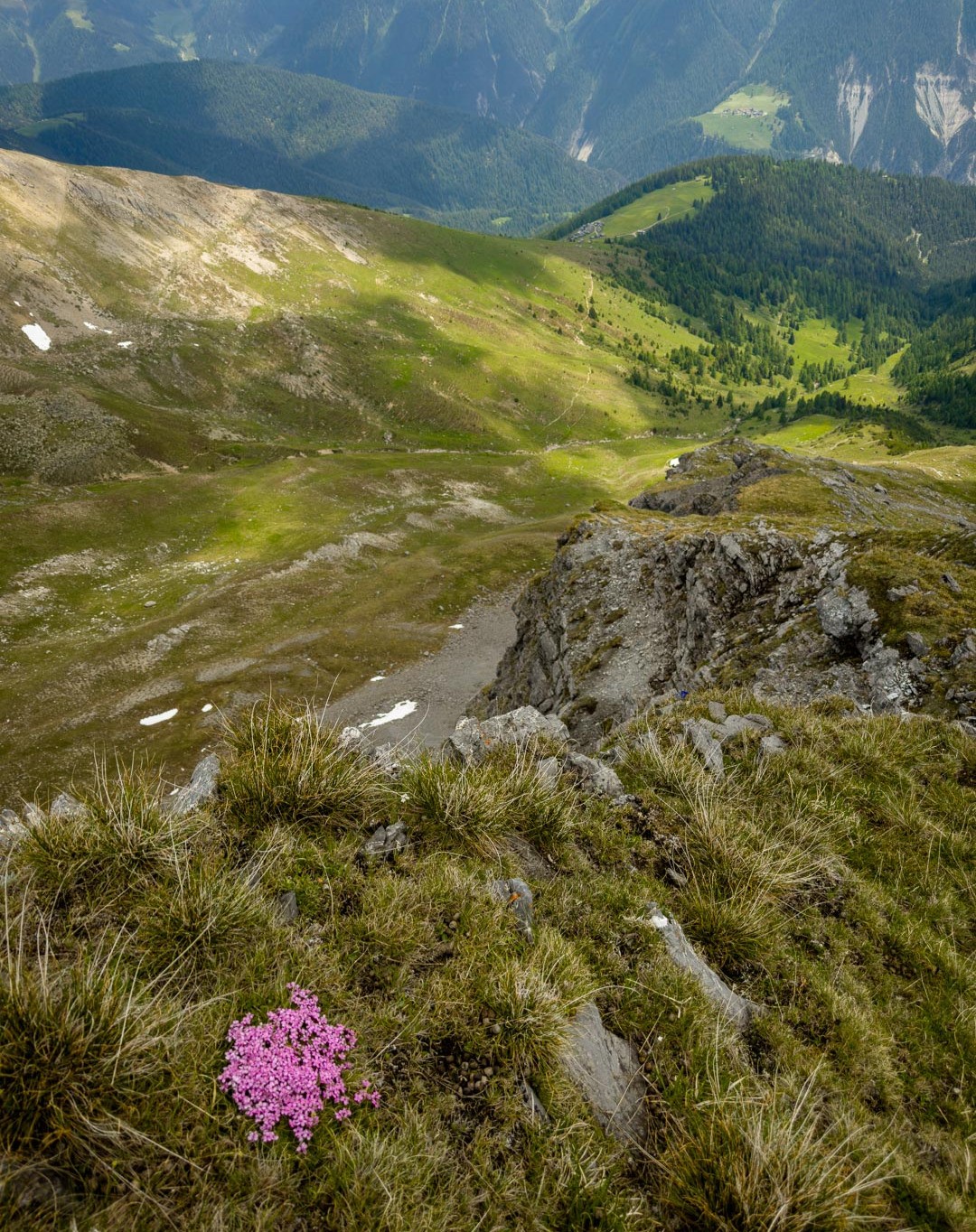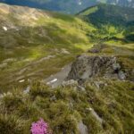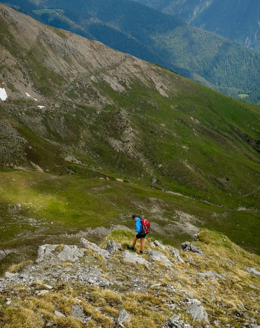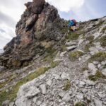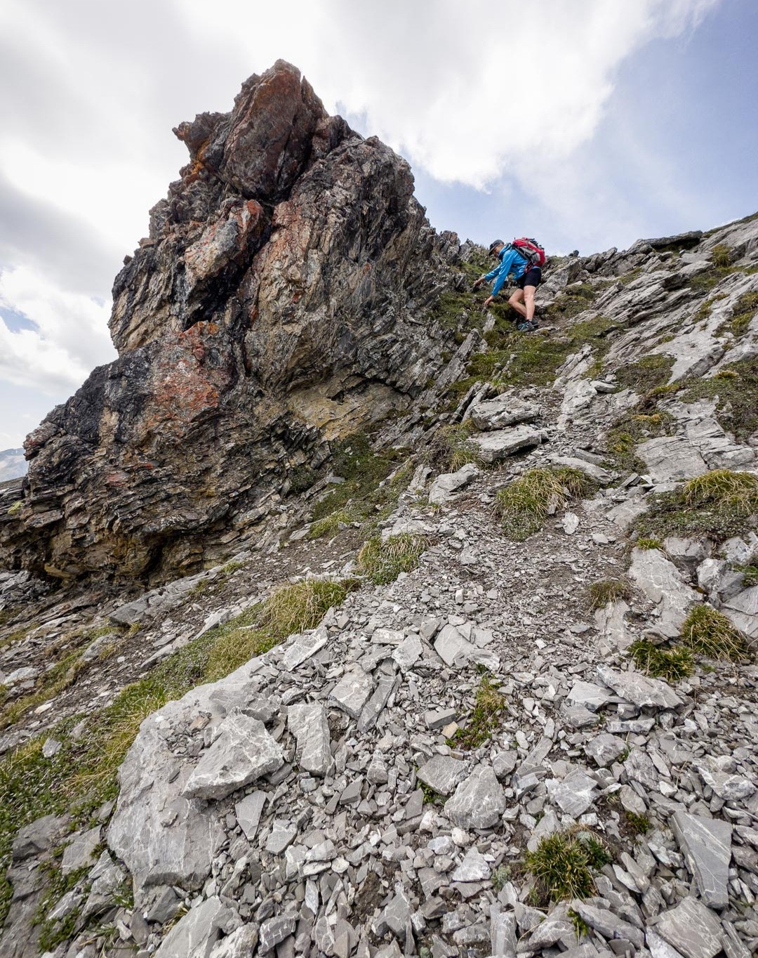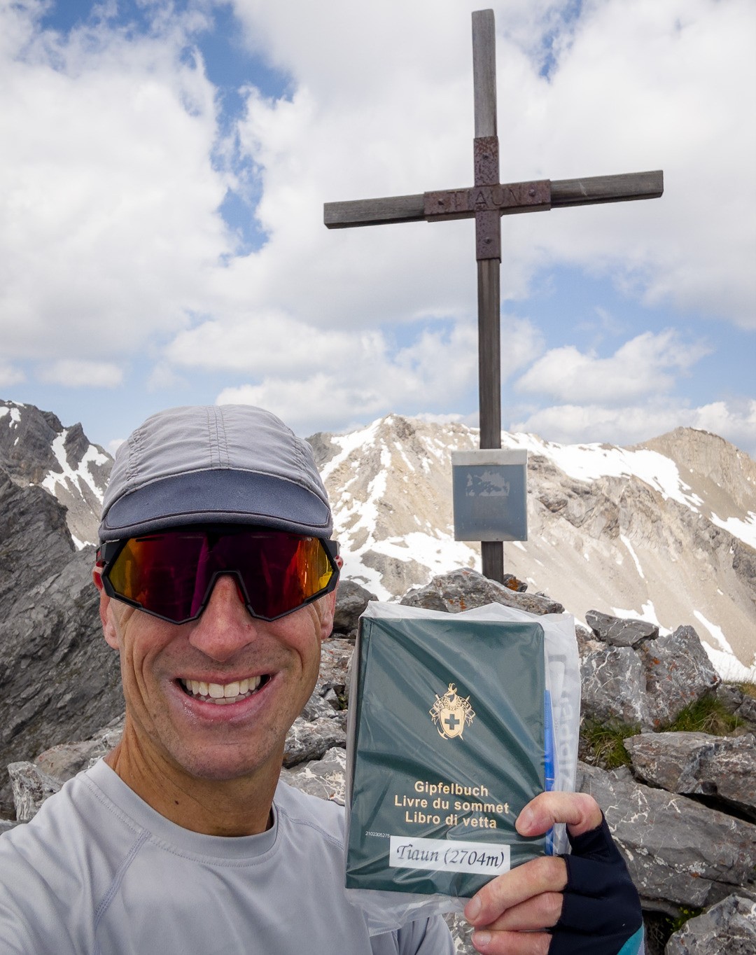 Aufstieg zum Tiaun. Wir hatten schon bei unseren letzten Besuchen festgestellt, dass das alte Gipfelbuch längst vollgeschrieben war. Über die Lebensdauer von 2006-2023 gab es Einträge von 20-40 Besteigern pro Jahr, was für die abgeschiedene und wenig bekannte Lage als Gipfelziel spricht. Aufstieg auf der Westseite, Abstieg entlang der Abbruchkante auf der Ostseite hinunter zur Alp Martrüel.