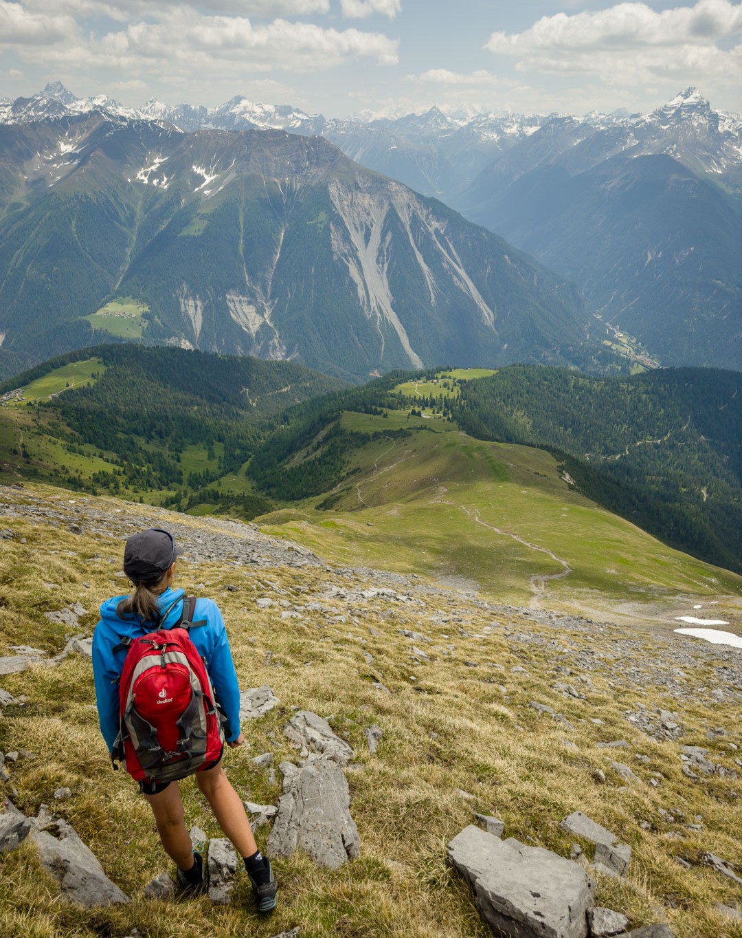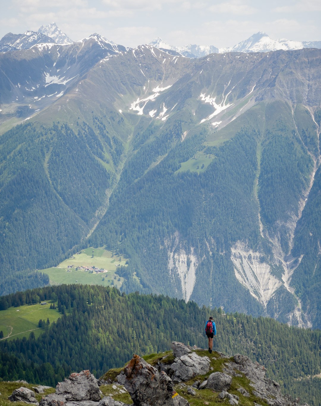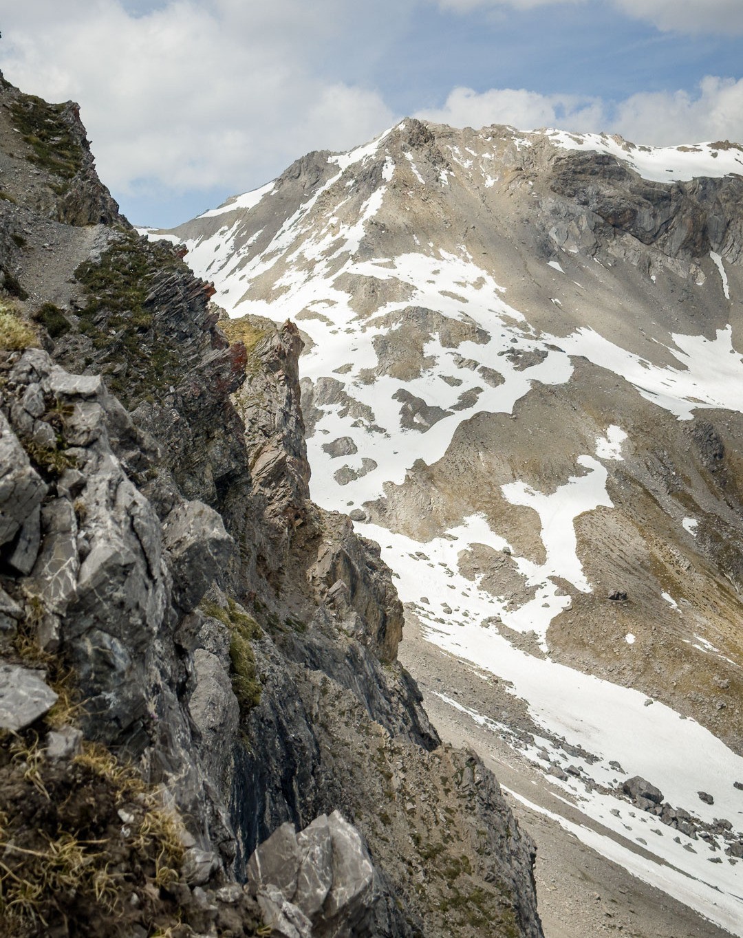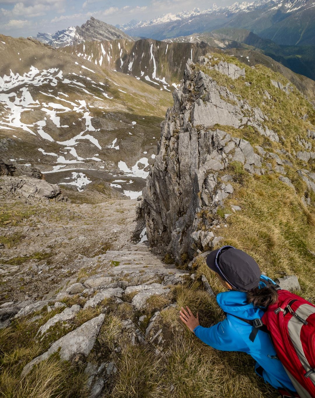 Aufstieg zum Tiaun. Wir hatten schon bei unseren letzten Besuchen festgestellt, dass das alte Gipfelbuch längst vollgeschrieben war. Über die Lebensdauer von 2006-2023 gab es Einträge von 20-40 Besteigern pro Jahr, was für die abgeschiedene und wenig bekannte Lage als Gipfelziel spricht. Aufstieg auf der Westseite, Abstieg entlang der Abbruchkante auf der Ostseite hinunter zur Alp Martrüel.