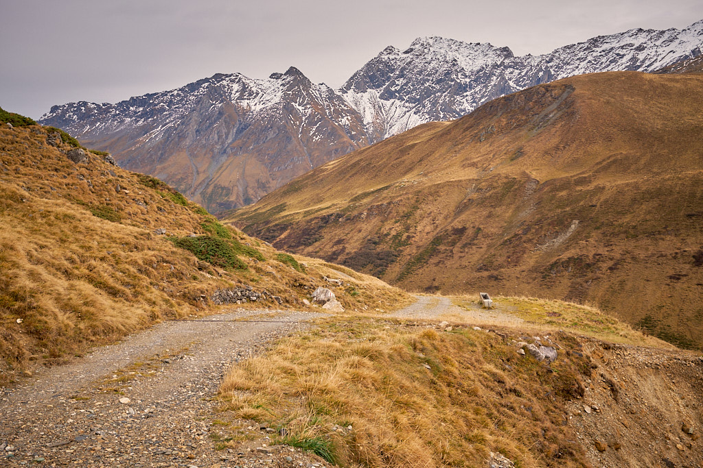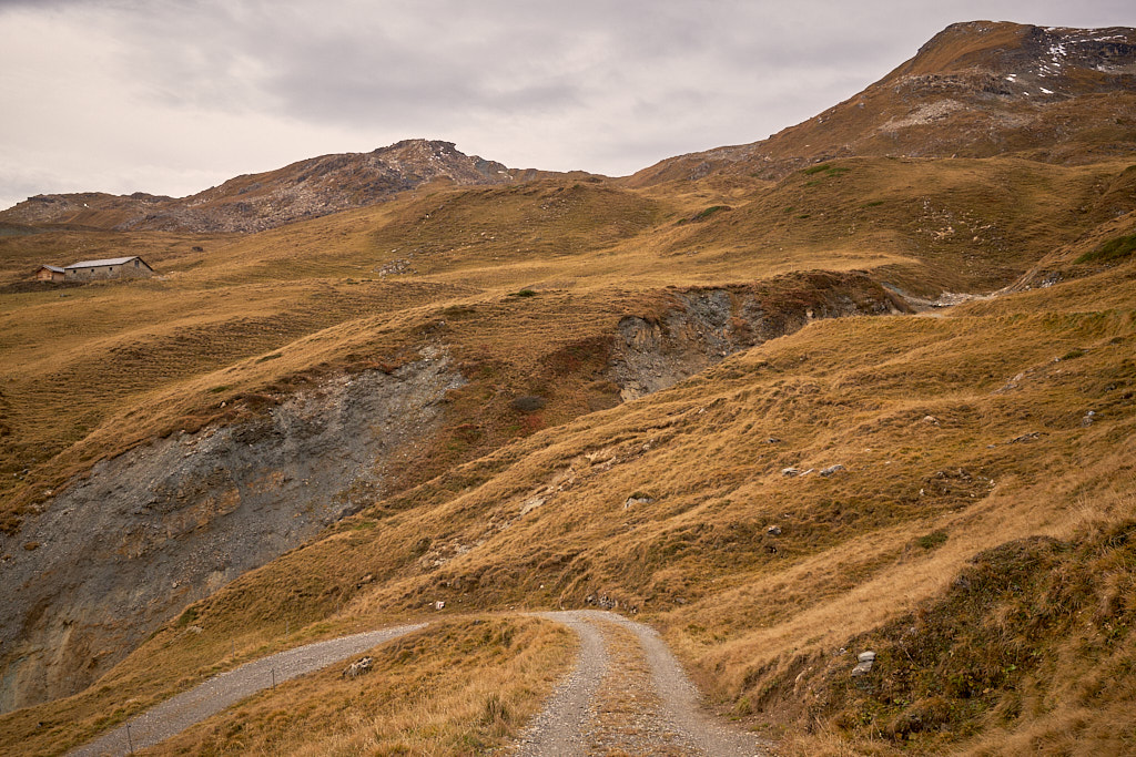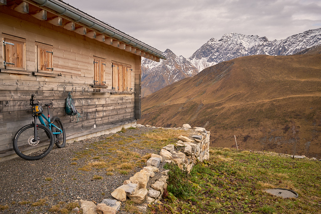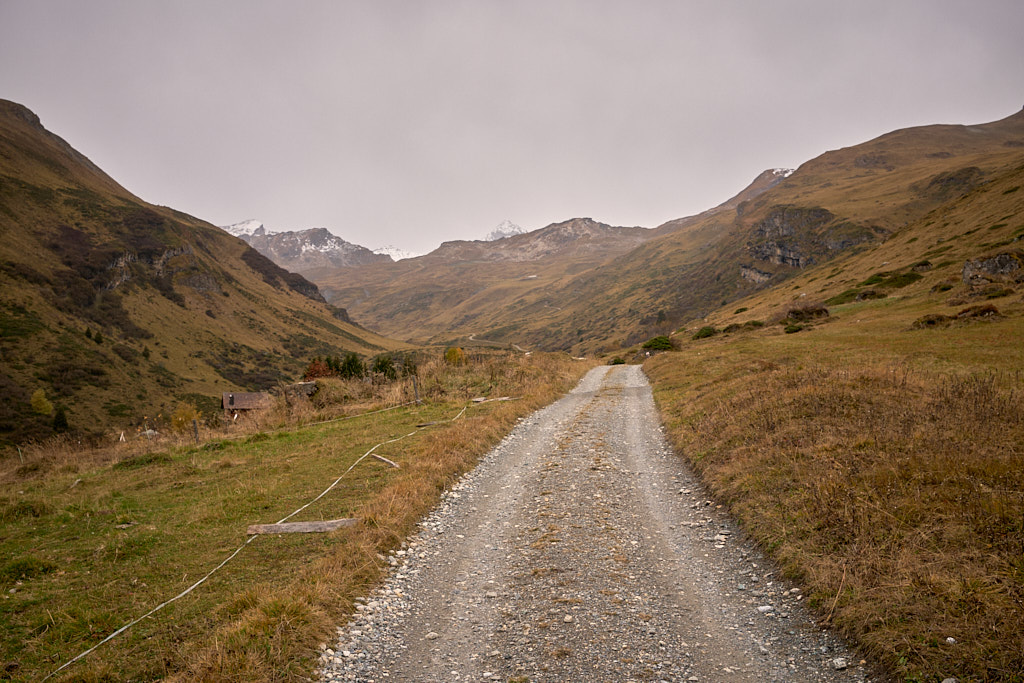 Bei Radons begann der steile Schotterweg zur Alp Schmorra. In Tourenberichten hatte ich schon gelesen, wie man das Bike stellenweise bis zur Alp schieben müsse. Meine Berechnung der Durchschnittsteigung lag zwar bei rund 12% und damit im grundsätzlich fahrbaren Bereich, dies muss aber erfahrungsgemäss nichts heissen – ausschlaggebend in der Praxis ist vor allem der Untergrund und ob kurze, aber heftige Zwischenanstiege schlussendlich zum Absteigen zwingen. Ich fuhr der Alp Schmorra meterweise entgegen und beobachtete mit zunehmender Unruhe, wie die Entfernung zur Alp schneller abnahm als der verbleibende Höhenunterschied. Die befürchteten Steilstücke gab es dann tatsächlich, sie waren aber zum Glück kurz genug und von flacheren Abschnitten gefolgt, sodass ich nie völlig ausser Atem geriet. Ich erreichte die Alp Schmorra also durchgehend im Sattel, das war soweit die gute Nachricht.