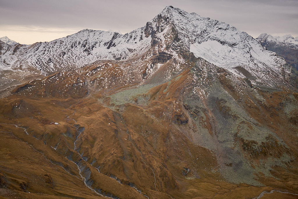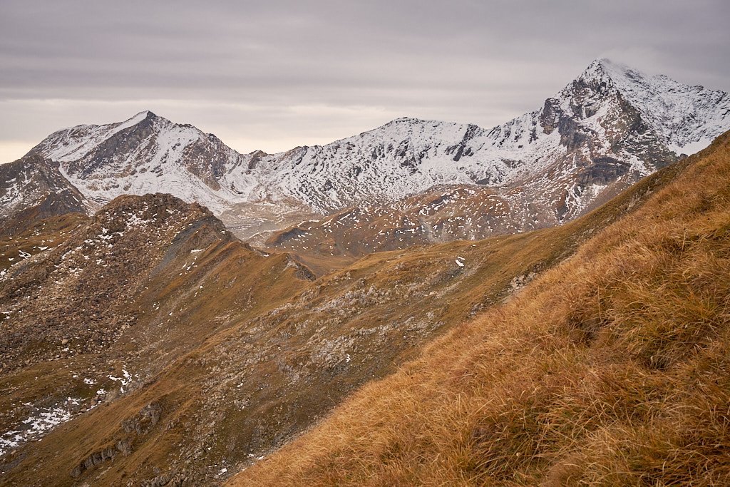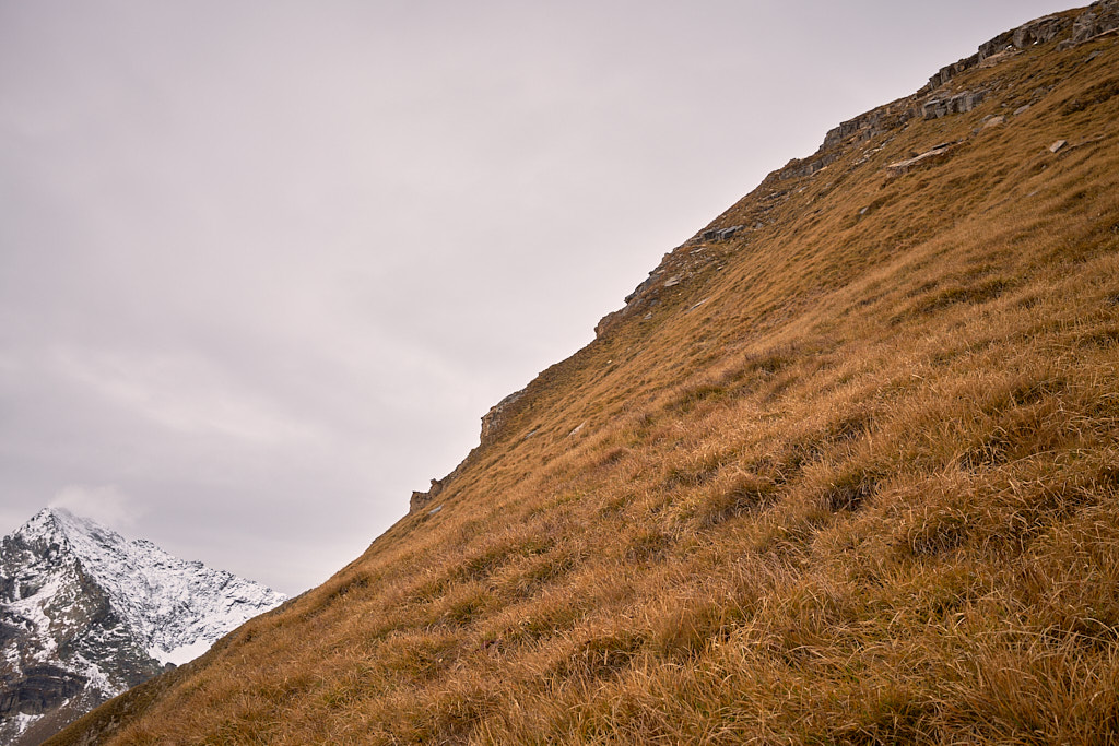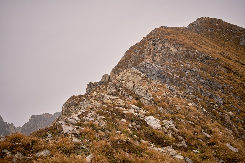 Die „offiziellen” Anstiege zum Gipfel verliefen über den Nord- und den Südgrat, beide weglos. Derjenige von Norden war mit T5 bewertet und schien mir bei diesen Verhältnissen zu gewagt zu sein. Der Aufstieg von Süden war gemäss Berichten etwas einfacher und lag zudem näher bei der Hütte.
