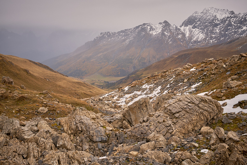 Vor kurzem erst waren wir auf einer kleinen Herbstwanderung nach Radons unterwegs und hatten die verschiedenen Gipfel und Täler in der Gegend um das Val Curtegns bestaunt. Einen dieser Gipfel wollte ich mir heute näher anschauen. Meine Wahl fiel auf dem Piz Settember, der am einfachsten von der Alp Schmorra aus erreicht werden kann. Zu dieser führt wiederum ein Alpweg von Radons hoch. Ich hoffte daher, die lange Wegstrecke aus dem Tal bis zur Alp Schmorra zeitsparend mit dem Mountainbike zurücklegen zu können, sodass es von dort bis zum Gipfel des Piz Settember zu Fuss nicht mehr allzu weit sein würde.