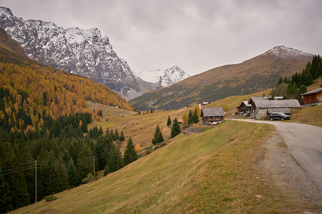 Von Salouf aus fuhr ich über Parsonz nach Tigignas. Die meisten steileren Stücke waren auf diesem Teilstück zu überwinden und hinter Tigignas nahm die Steigung nach Radons dann wesentlich ab. Ich fuhr hier relativ gemütlich, um meine Kräfte für den zu erwartenden sehr anstrengenden Aufstieg von Radons zur Alp Schmorra zu sparen. Das Wetter war bewölkt und angenehm frisch. Nach meinem letzten Stand vom Morgen war heute auch kein Niederschlag zu erwarten.