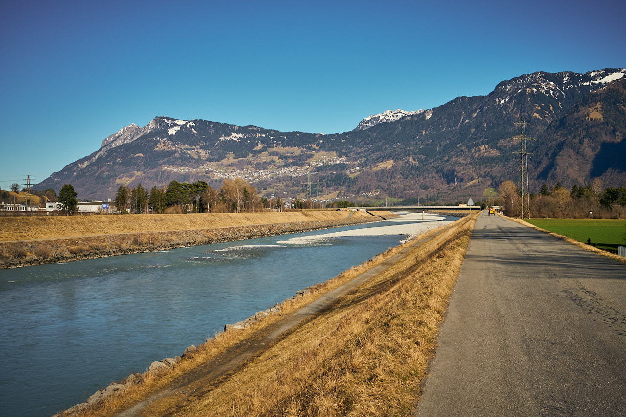 Gravelbike-Tour bei sehr milden Temperaturen im Rheintal. Von Landquart aus über das Heididorf bei Maienfeld, St. Luzisteig und Balzers nach Vaduz. Dem Rhein entlang zurück via Bad Ragaz.
