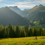 Von Davos Glaris mit den Mountainbikes nach Jatzmeder und auf dem schönen Höhenweg weiter bis Äbirügg. Von dort zu Fuss weiter zur Hubelhütte und zum Gipfel des Rinerhorns. Auf gleichem Weg wieder zurück. Nachdem es tagsüber grösstenteils bewölkt und regnerisch war, kam zum Schluss tatsächlich noch etwas blauer Himmel und Sonne hervor.