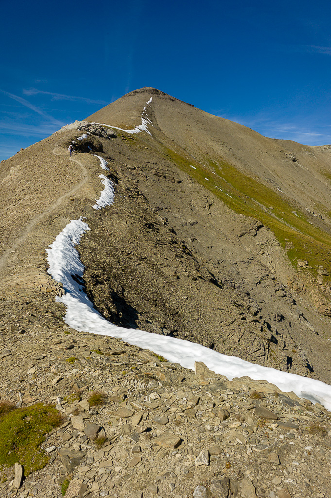 Vom Ammertepass nach Nordwesten in engen Kehren über die steile, aus feinem Geröll bestehende Südostkante zum Gipfel (2.613m).