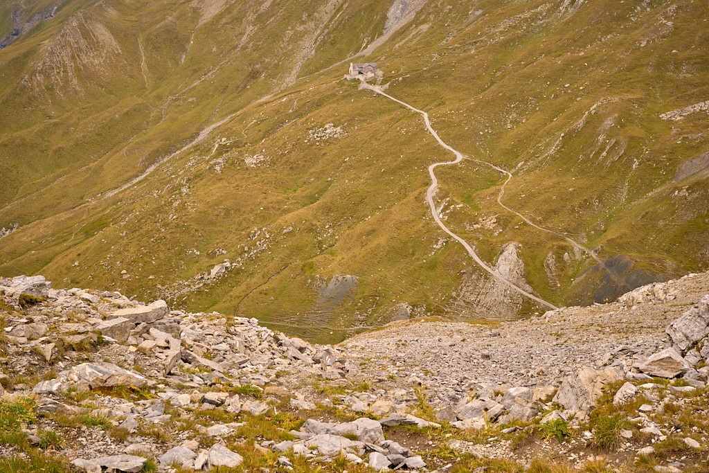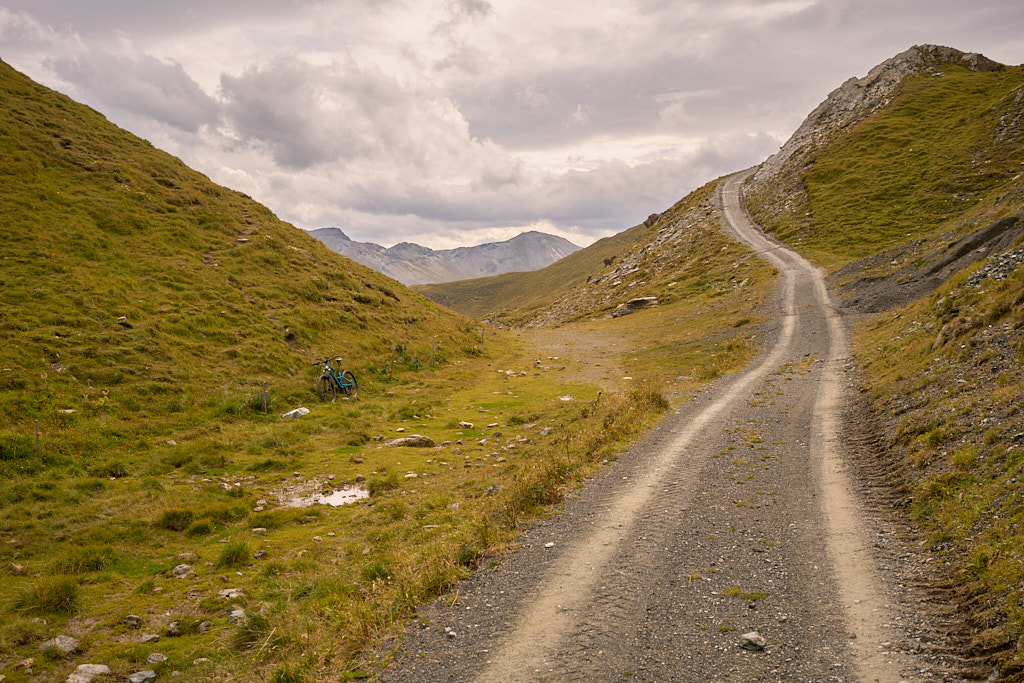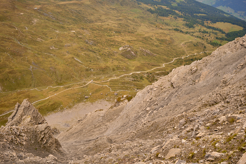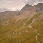 Zunächst ging es mit geringer Steigung, aber dafür sehr langgezogen auf der asphaltierten Alpstrasse von Salouf hinauf zu den Ferienhütten von Munter. Hier endete die Ausbaustrecke kurz nach einem sehr geschätzten Brunnen. Die durchschnittliche Steigung von nun an bis zur Kirche Ziteil war die gleiche wie bisher. Allerdings wechselten sich flache Abschnitte mit heftigen Steigungen ab. Letztere dazu noch überwiegend mit sehr losem Untergrund, der meinen Puls immer wieder in den roten Bereich trieb. Zur soweit auf dieser Strecke üblichen Anstrengung kam heute noch ein heftiger Gegenwind hinzu, der von der anderen Seite über die «Furcletta» (den Passübergang zwischen dem Piz Toissa und der Gipfelkette vom Piz Curver) toste. Kurz vor der Furcletta und fast am Ende des letzten Steilaufschwungs schaffte es eine Windböe dann tatsächlich noch, mich aus dem Sattel zu wehen.
