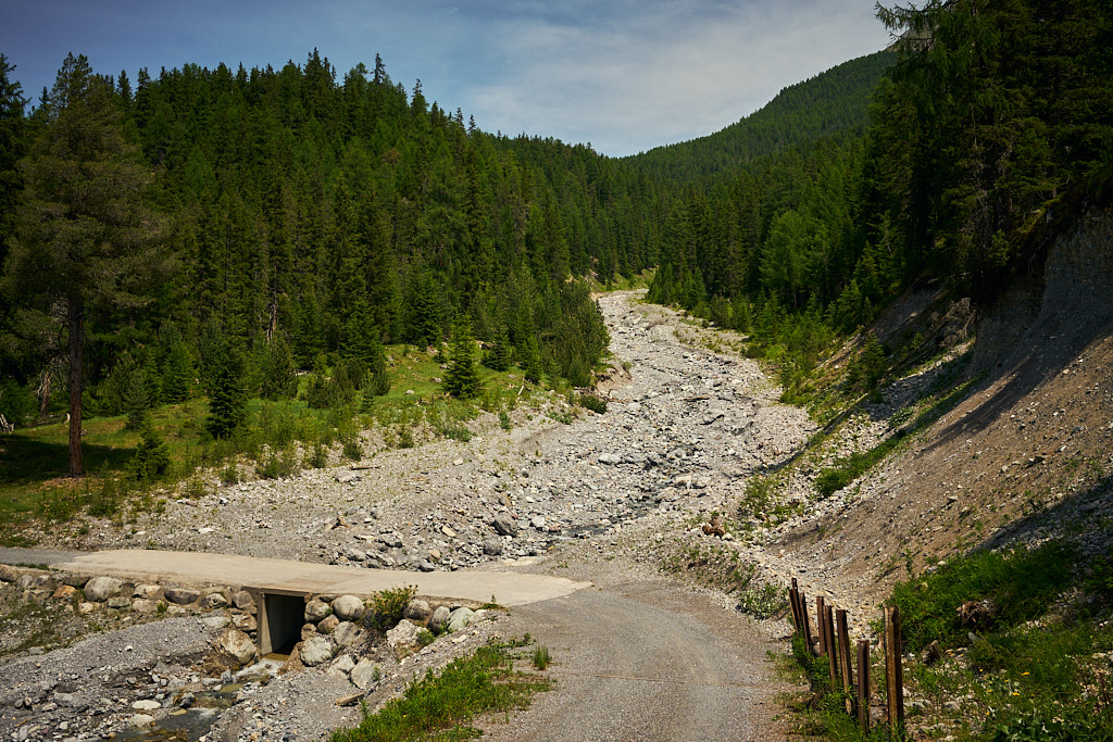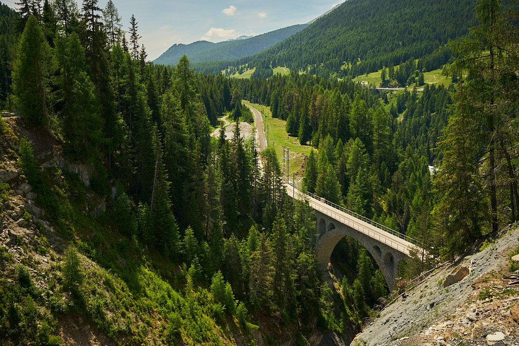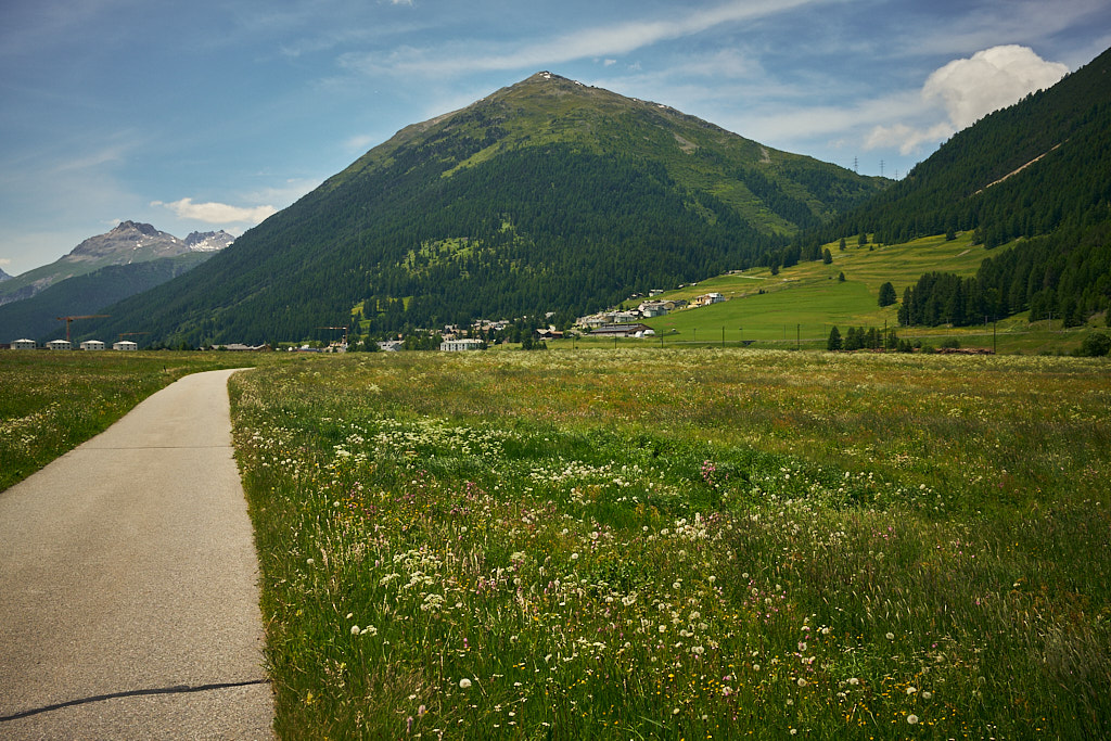 Im Gegensatz zum letzten Jahr, als ich die Tour wegen der gesperrten Zügenschlucht nicht zu Ende fahren konnte, war heute zum ersten Mal die vollständige Runde von Schmitten über den Albulapass nach La Punt, auf dem Inntalradweg durchs Engadin bis Susch, über den Flüelapass nach Davos und von Davos (ab Schmelzboden) auf der alten Zügenstrasse am Landwassertunnel vorbei nach Wiesen und nach Hause zurück möglich.