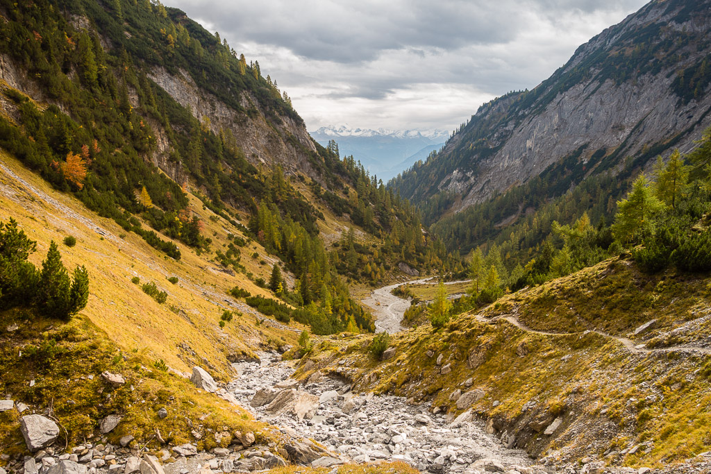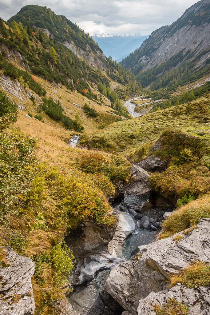 Nach einer Pause, der Bezahlung des Bergführers und der Verabschiedung aller Teilnehmer stieg ich dann wie am Tag zuvor wieder durch das Lawoital nach Tamins ab.