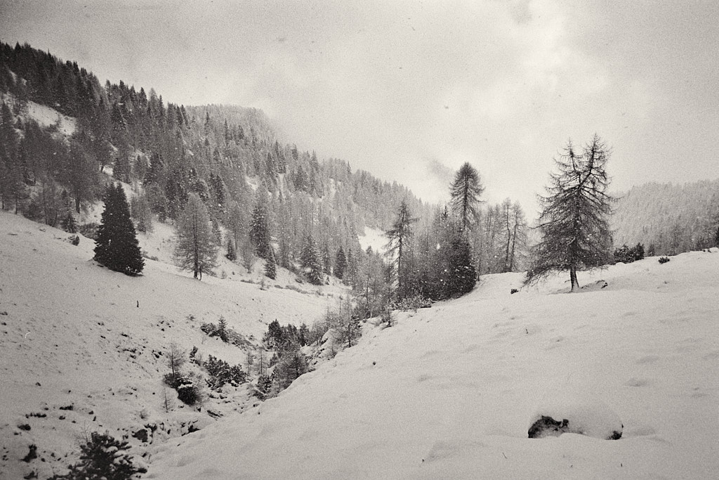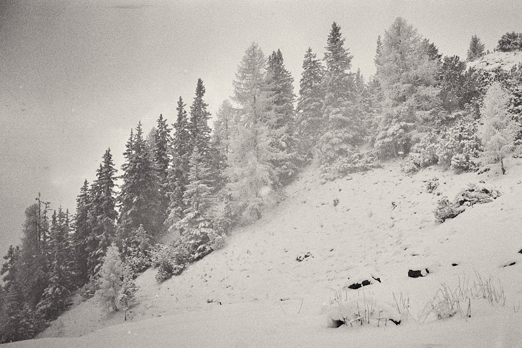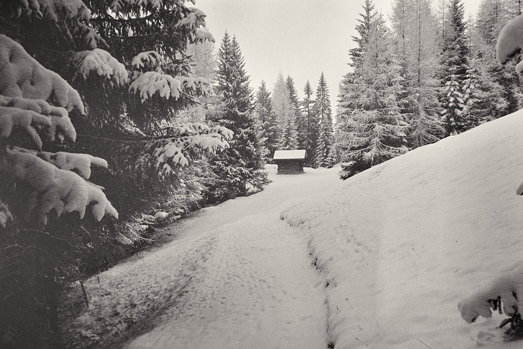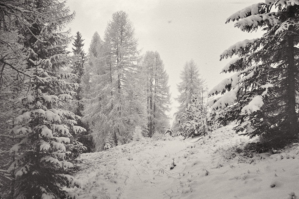 Über Acla und Zaplina zur Alp Afiein. Von dort mit Schneeschuhen weiter durch die stellenweise bereits mit Triebschnee bedeckte Ostflanke des Hübels zur Alp Martrüel. Abstieg auf dem Alpweg und Rückkehr über Pardela nach Schmitten.