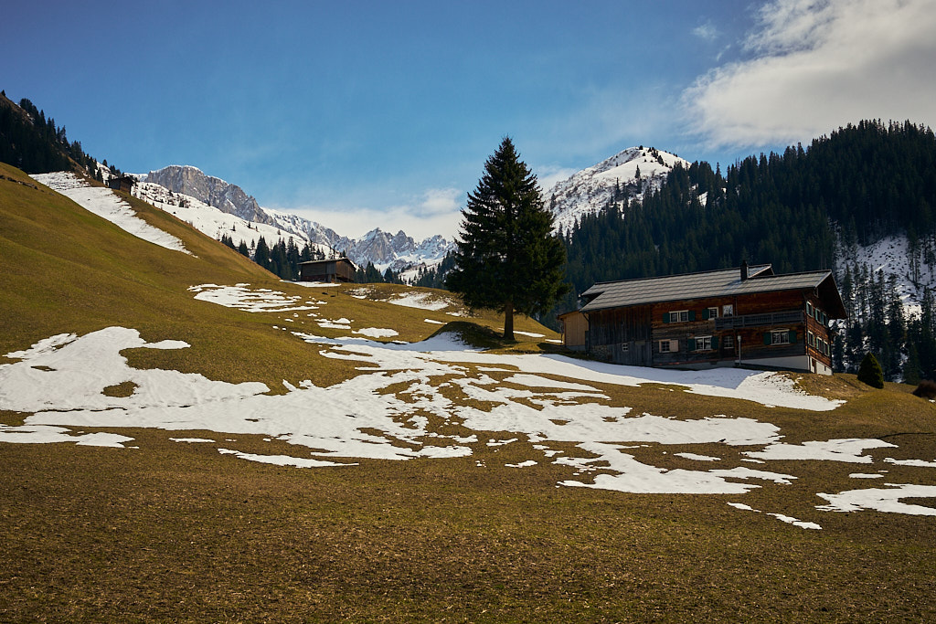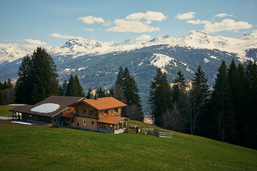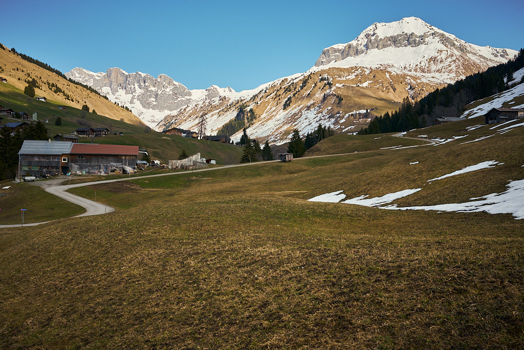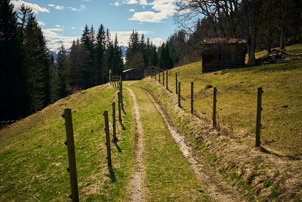 Hinter Seewis nahm ich nun den krönenden Abschluss der Tour in Angriff: die Abfahrt vom Fadärastein nach Landquart über den steilen Salisweg. Der Weg zum Fadärastein führte über das völlig abgelegene Hochplateau von Fadära, auf dem trotz der isolierten Lage immer noch ständig bewirtschaftete Höfe standen.