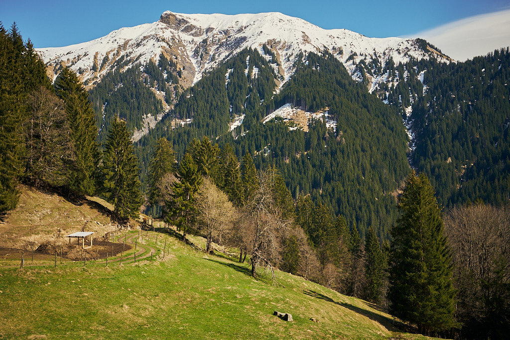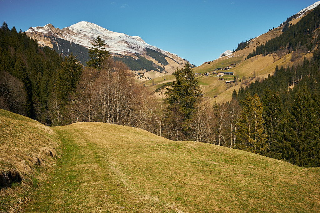 Vor Gadenstätt zweigte ein Feldweg von der Strasse in den Wald ab. Ich ächzte anfangs steil, danach weniger anstrengend an Kuhherden vorbei zu einem Wanderweg, der parallel zur Strasse, aber höher und viel schöner gelegen zurück nach Pany führte. Dummerweise war die Durchfahrt laut einem Schild für Biker verboten, obwohl der Weg auf der Landeskarte als MTB-Route markiert war. Ich begegnete aber niemandem und kam am oberen Ortsrand wieder in Pany an.