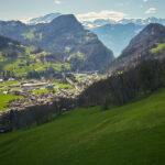 Ab Pany wurde die Fahrt weniger steil und führte hangwärts im Schanielatobel über die kleinen Weiler Gadenstätt und Ascharina nach St. Antönien. Dieses Dorf mit mehreren Hotels ist ein idealer Ausgangspunkt für Wanderungen rund um Drusenfluh, Sulzfluh und den anderen Gipfeln entlang der Landesgrenze zwischen der Schweiz und dem Vorarlberg. Von hier könnte man über das Drusator zur Lindauer Hütte auf der österreichischen Seite gelangen. Eine Wanderung von jener Seite zur Hütte habe ich bereits vor acht Jahren hier dokumentiert.