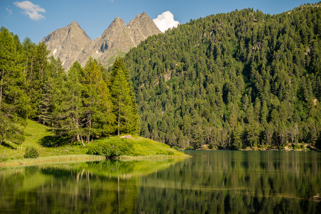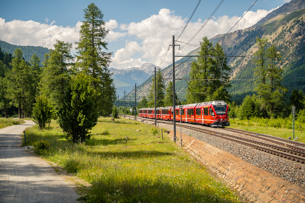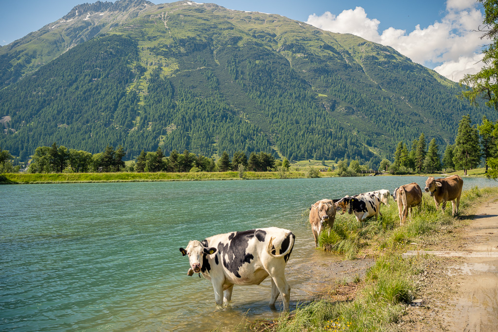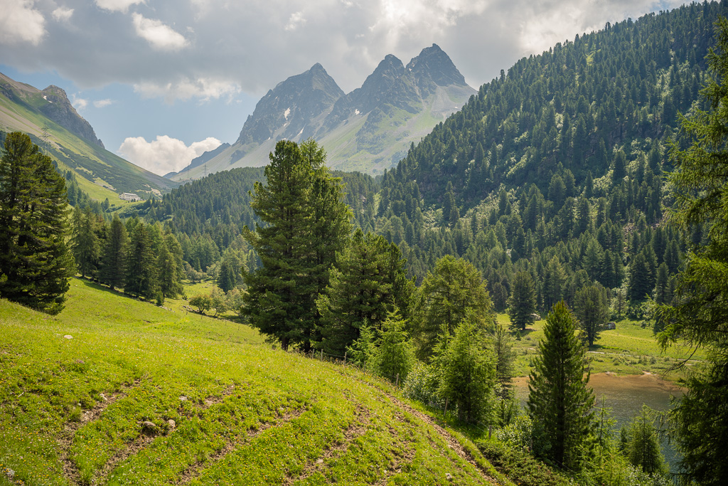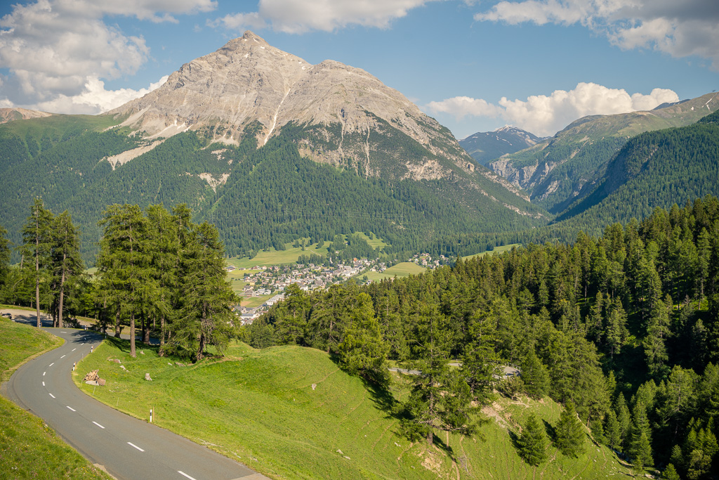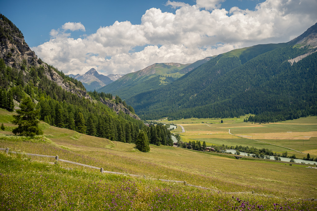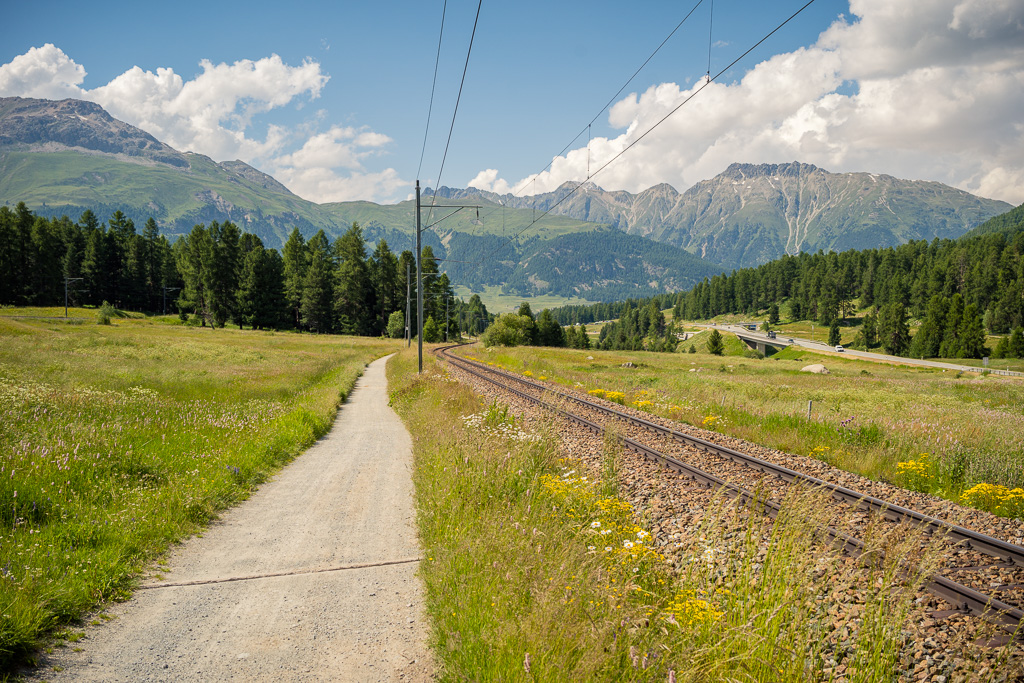 Heute war erneut schwüles Sommerwetter mit Gewitterwarnungen für den Nachmittag angesagt. Nachdem ich deshalb am Vortag schon vor einer längeren Exkursion auf dem Bike zurückschreckte, das Wetter dann aber den ganzen Tag über schön und sonnig blieb, wollte ich mich nicht nochmals von den ersten kleinen Wolken am Horizont abhalten lassen. Die Idee von neulich kam mir wieder in den Sinn und ich beschloss, mich vorerst einmal Schritt für Schritt ins hoffentlich kühlere Engadin auf den Weg zu machen, auch wenn ich «nur» bis nach St. Moritz kommen würde.