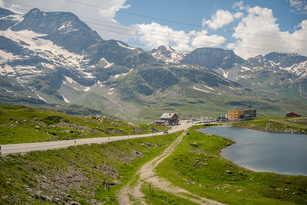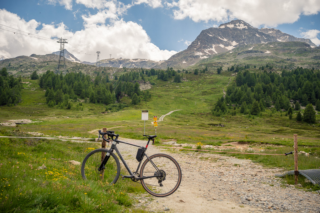 Die Ankunft bei der Talstation der Diavolezza-Bahn erzeugte ein etwas kurioses Gefühl, nachdem wir erst 48 Stunden zuvor von hier aus nach einer aufwändigen Hinfahrt im Zug zu unserer Wanderung zum Lej da Diavolezza aufgebrochen waren und ich heute stattdessen mit dem Gravelbike am genau gleichen Ort stand. Im Bewusstsein, dass es von hier aus nicht mehr weit bis zum Berninapass sein würde, machte ich mich daran, die letzten paar Kilometer und Kurven bis zum Bernina-Hospiz und noch etwas weiter zur Passhöhe dahinter anzupacken.