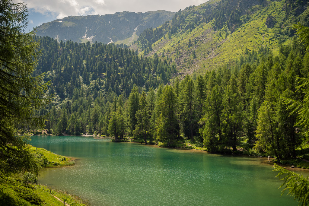 Die Abfahrt war sehr schön; auch war um diese Zeit nicht mehr viel Verkehr zum Pass unterwegs. Auch der Lai da Palpuogna sah um diese Tageszeit noch schöner und kitschiger als in der Mittagssonne zuvor aus. Bei Bellaluna wollte ich die Hauptstrasse eigentlich verlassen und stattdessen auf dem Waldweg nach Filisur fahren. Leider war dieser aber wegen dem kürzlichen Hochwasser immer noch gesperrt und so fuhr ich wieder auf der Strasse weiter. Beim Biohof Las Sorts zweigte ich dann endgültig ab, packte noch Käse und Eier vom Hofladen ein und fuhr über Zinols am Albulafluss entlang weiter nach Alvaneu Bad. Über den letzten verbleibenden Aufstieg von hier bis nach Alvaneu Dorf und nach Hause kroch ich nur noch im Schneckentempo hoch; weit über 100 km und 3000 Höhenmeter waren inzwischen zusammengekommen, aber für dieses grossartige Erlebnis heute hatte sich heute jede Mühe gelohnt.
