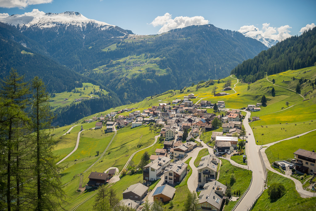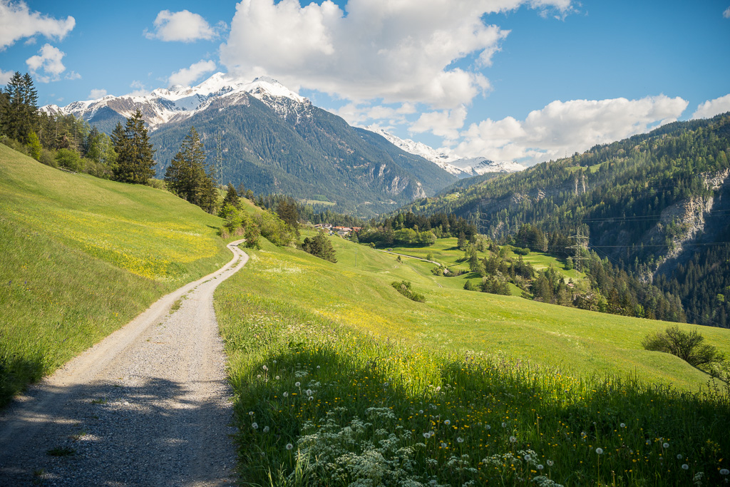 Der weitere Rückweg verlief etwas ausgedehnter als beabsichtigt. Zunächst fuhr ich am Westufer vom Heidsee entlang nach Lenzerheide. Dort beschloss ich spontan, nach Sporz hochzufahren, da ich diesen Abschnitt noch nie in dieser Richtung gefahren bin. In Sporz begann eine lange und kurvenreiche Abfahrt über Lain, Zorten und Muldain bis hinunter nach Alvaschein. Nach einem Abstecher zur Kirche Mistail erreichte ich Tiefencastel, wo ich der Albula entlang über Surava und Alvaneu Bad wieder den schon fast traditionellen Schlussanstieg nach Alvaneu erreichte.