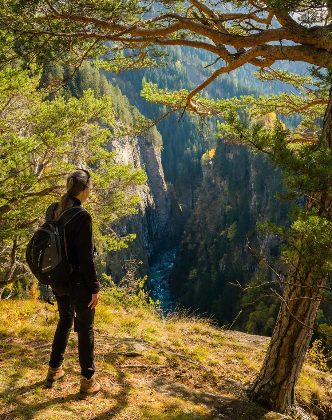 Wanderung von Thusis aus zur Burg Hochrätien. Weiter über den Veia Traversina Pfad bis zur Viamala-Schlucht und über die alte Fahrstrasse wieder zurück nach Thusis.